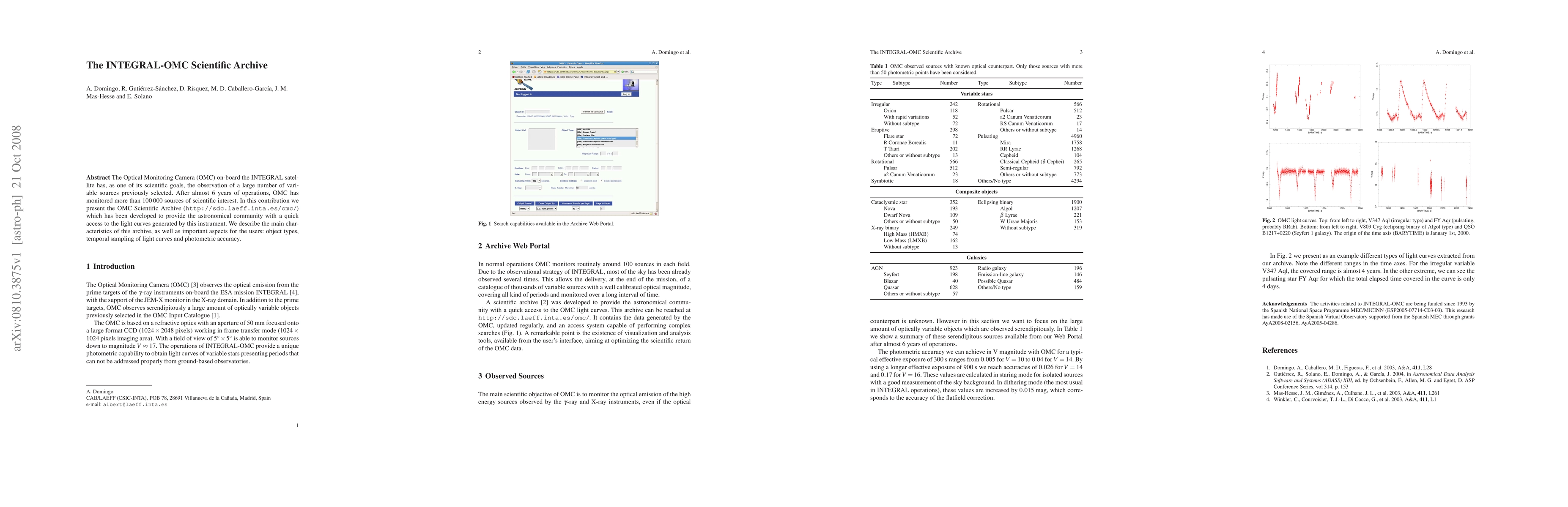 The Optical Monitoring Camera (OMC) on-board the INTEGRAL satellite has, as one of its scientific goals, the observation of a large number of variable sources previously selected. After almost 6 years of operations, OMC has monitored more than 100 000 sources of scientific interest. In this contribution we present the OMC Scientific Archive (http://sdc.laeff.inta.es/omc/) which has been developed to provide the astronomical community with a quick access to the light curves generated by this instrument.We describe the main characteristics of this archive, as well as important aspects for the users: object types, temporal sampling of light curves and photometric accuracy.