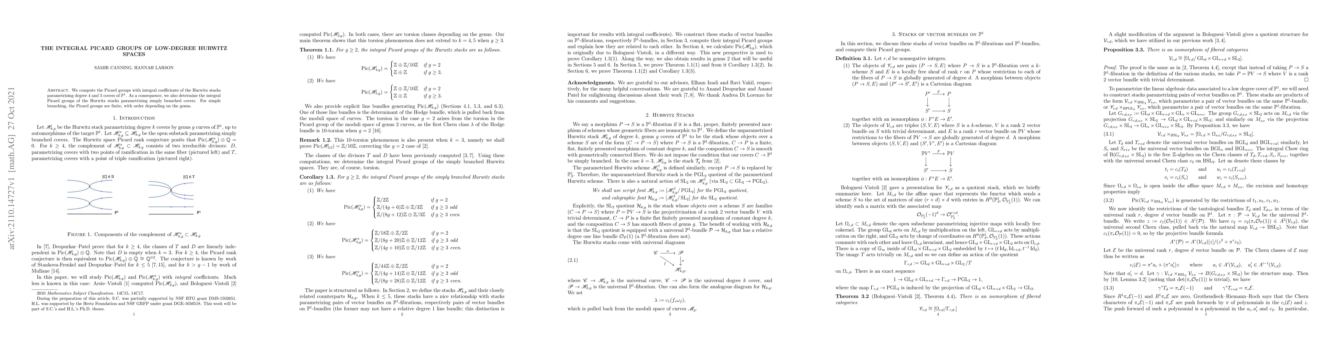 This paper computes the integral Picard groups of Hurwitz stacks for degree $4$ and $5$ covers of $\mathbb{P}^1$, revealing that these groups are finite and their order depends on the genus of the covers.