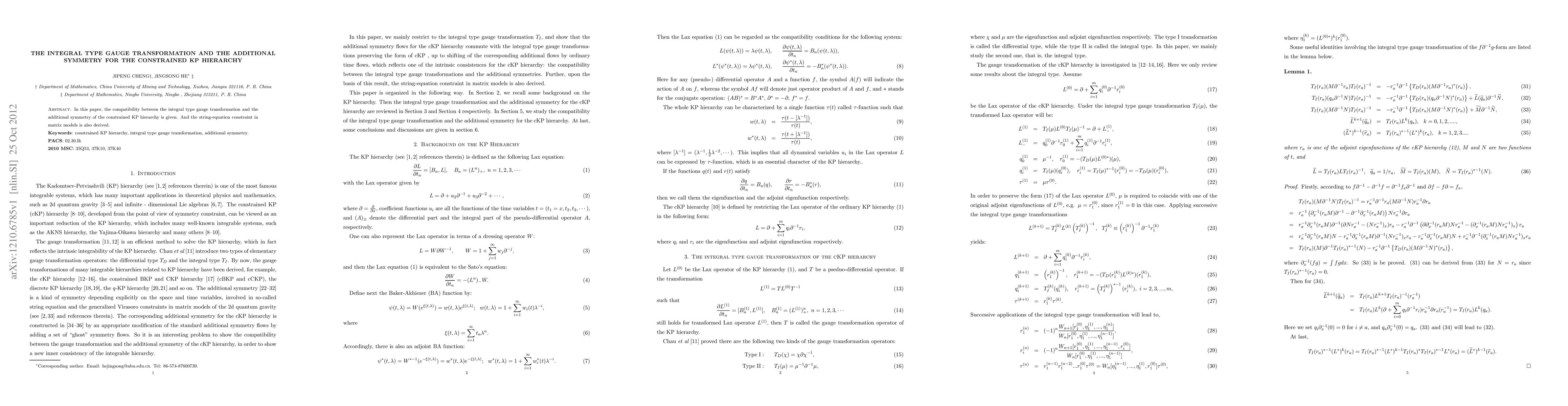 This paper explores the compatibility between integral type gauge transformations and additional symmetries within the constrained KP hierarchy, and derives the string-equation constraint relevant to matrix models.