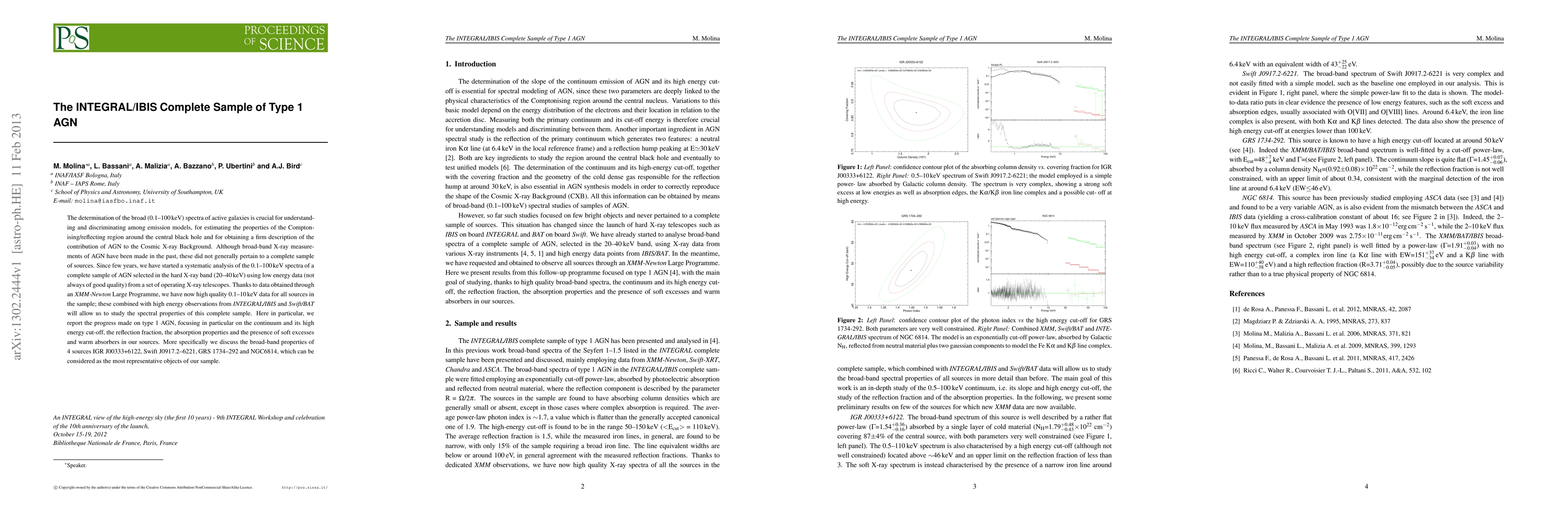 This paper analyzes the broad (0.1-100 keV) X-ray spectra of a complete sample of Type 1 Active Galactic Nuclei (AGN) using data from INTEGRAL/IBIS and XMM-Newton. It focuses on the spectral properties, including continuum, high energy cut-off, reflection fraction, and absorption features, highlighting four representative sources.
