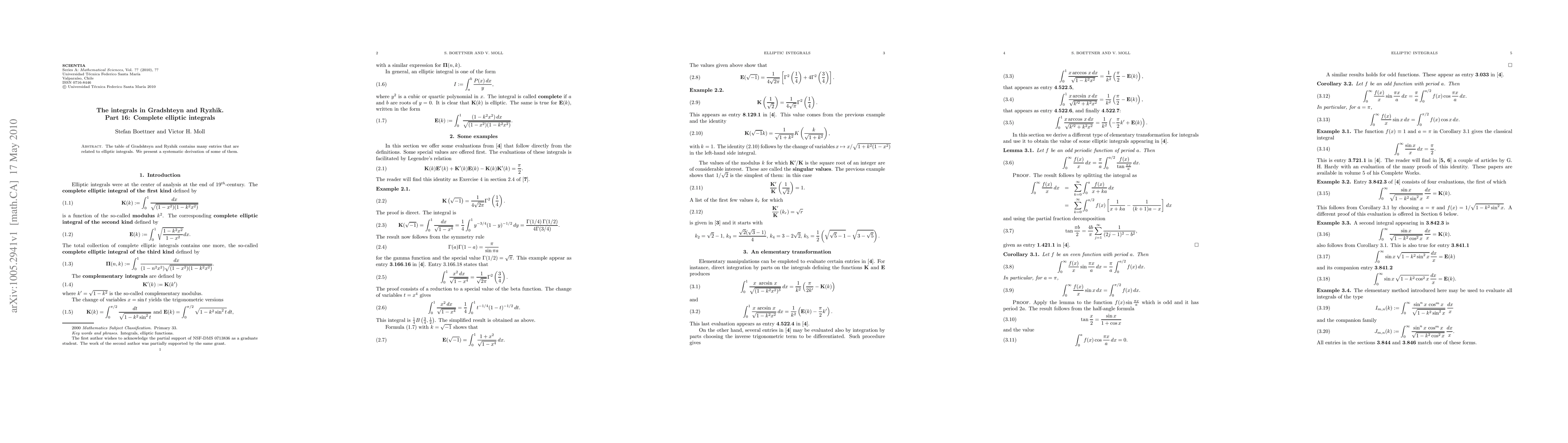 Summary: This paper provides a systematic derivation of selected complete elliptic integrals found in the comprehensive table of Gradshteyn and Ryzhik, enhancing the understanding of these important mathematical functions.