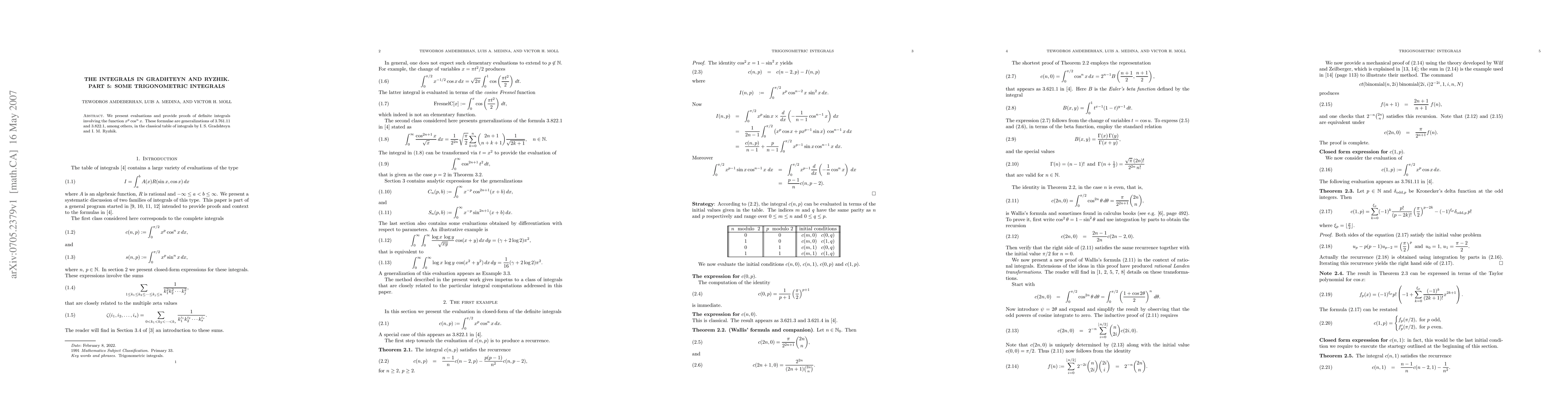 This paper evaluates and proves definite integrals of the form ∫x^p cos^n x dx, generalizing specific results from Gradshteyn and Ryzhik's classical table of integrals. The findings extend beyond existing entries, offering new trigonometric integral formulae.