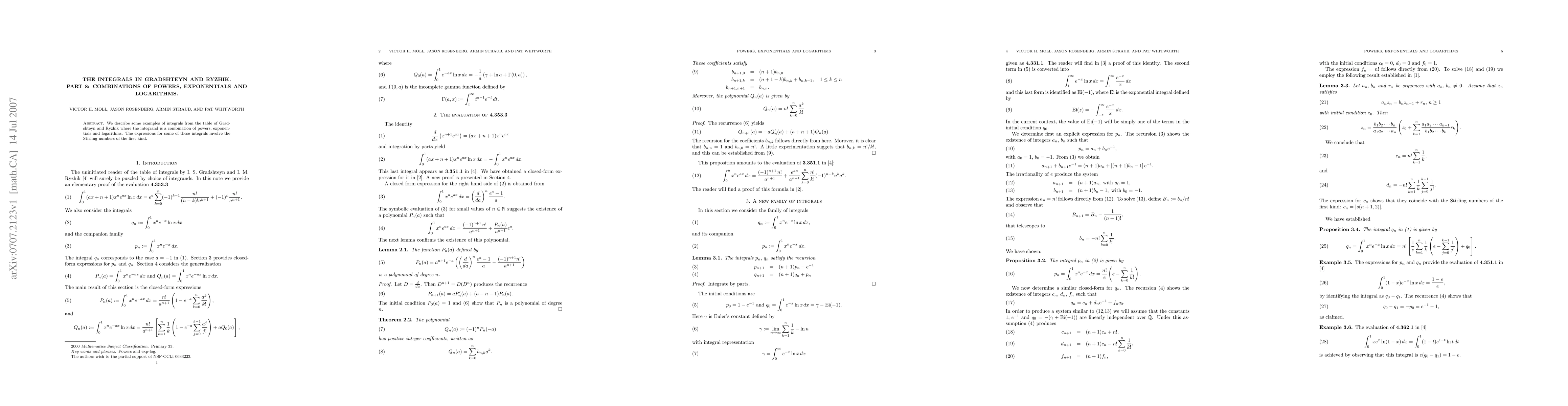 This paper evaluates certain definite integrals from Gradshteyn and Ryzhik’s table, focusing on integrands that combine powers, exponentials, and logarithms. The solutions provide valuable tools for advanced mathematical analysis and applications.
