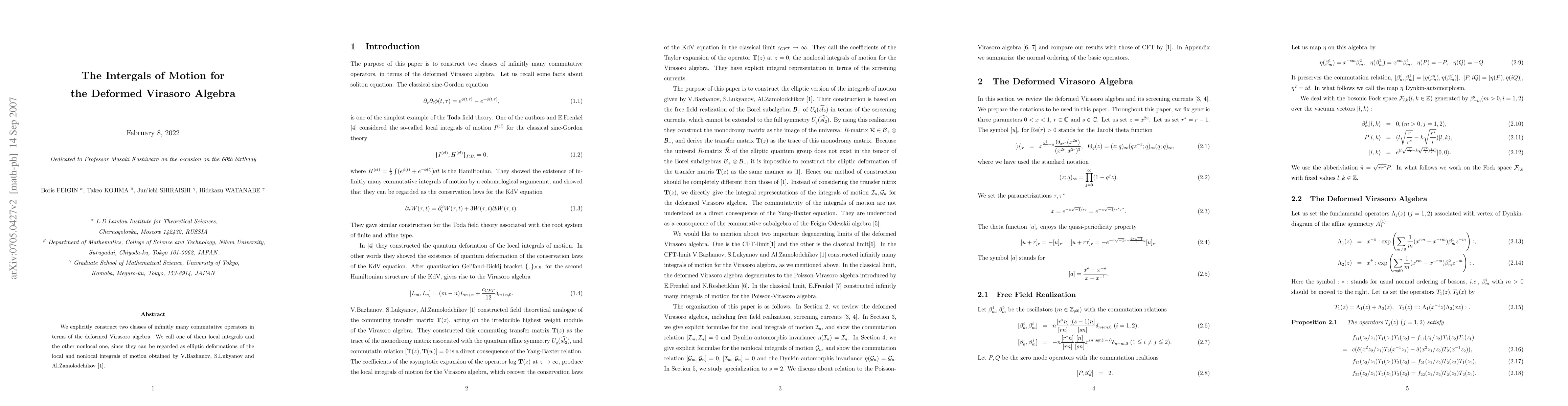 Researchers construct two classes of commutative operators from the deformed Virasoro algebra, one local and one nonlocal, extending previous work on integrals of motion.