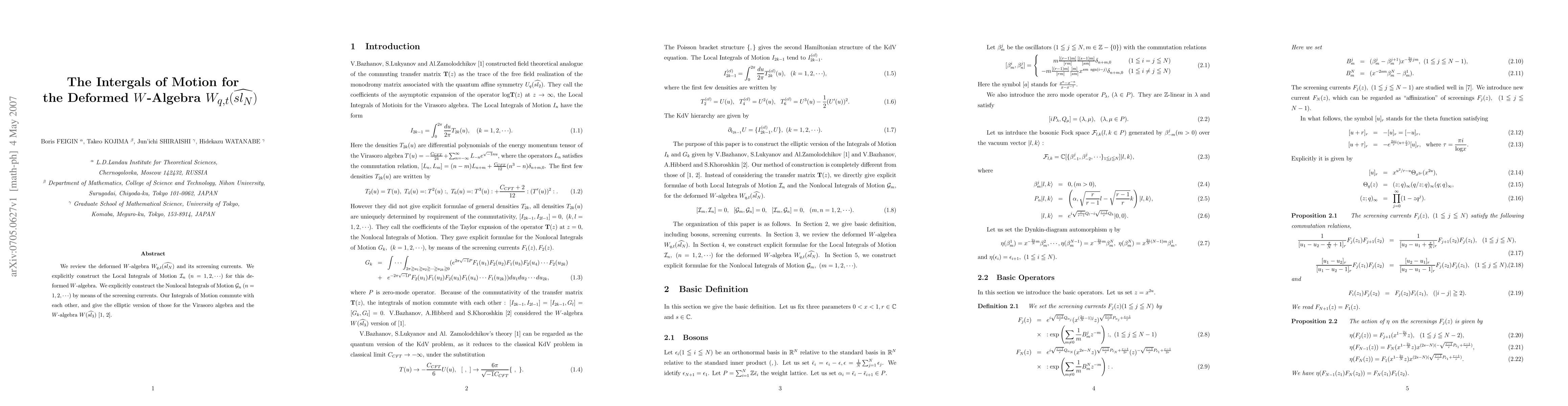 This paper reviews the deformed W-algebra Wqt(sl_N^), constructing its local and nonlocal integrals of motion. These integrals commute with each other, providing an elliptic version similar to those of the Virasoro algebra and W(sl_3^) algebra.