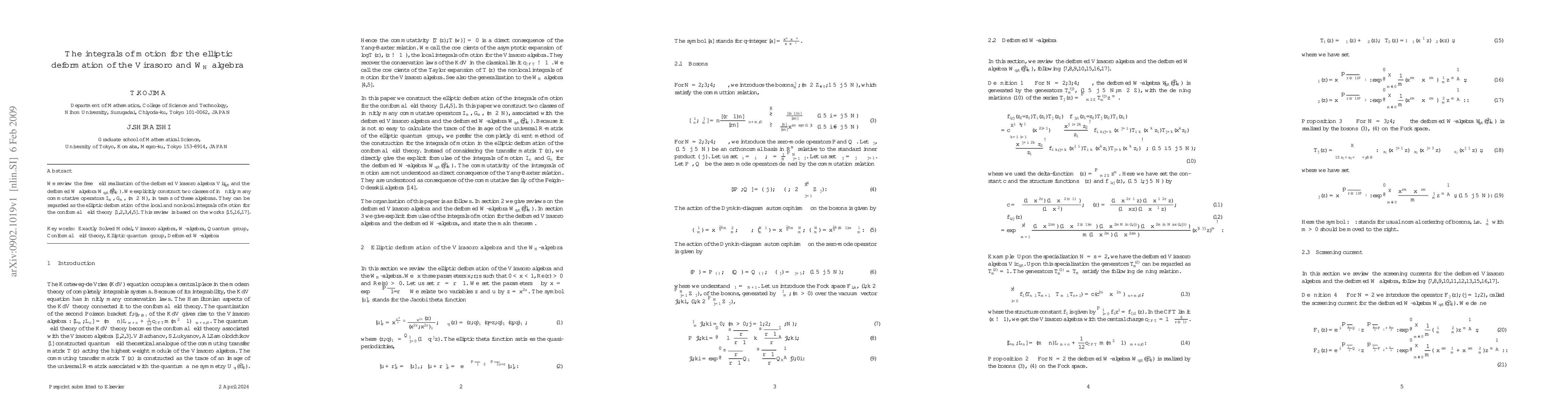 Researchers construct elliptic deformation of Virasoro and $W_N$ algebras' integrals of motion, providing a foundation for conformal field theory.