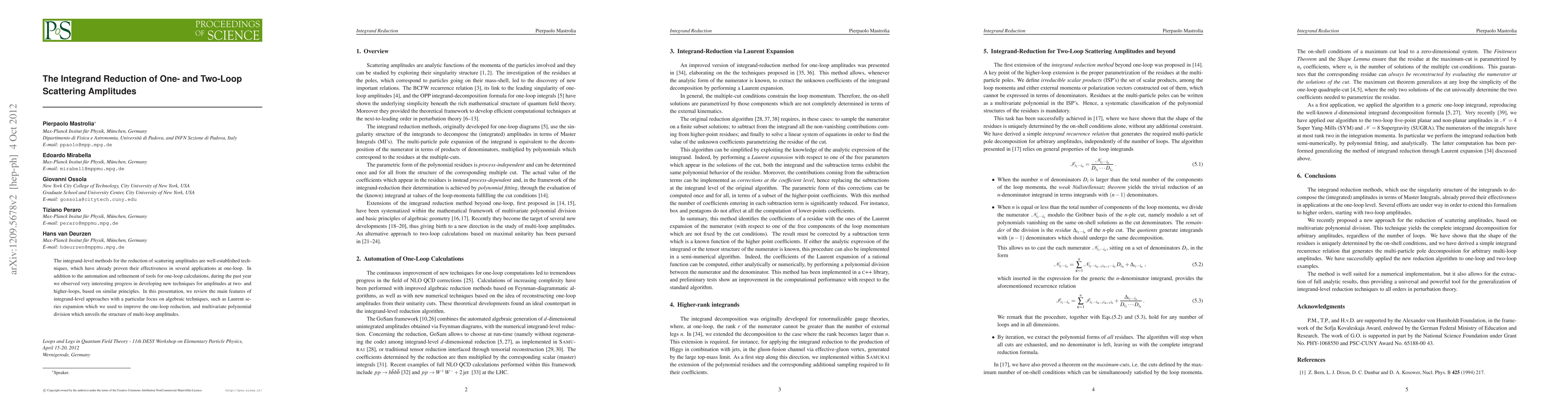 This paper reviews advanced integrand-level methods for reducing scattering amplitudes, emphasizing algebraic techniques like Laurent series and multivariate polynomial division, which enhance both one-loop and newly developed two-loop calculations. The focus is on automation and refinement of computational tools for loop amplitude reductions.