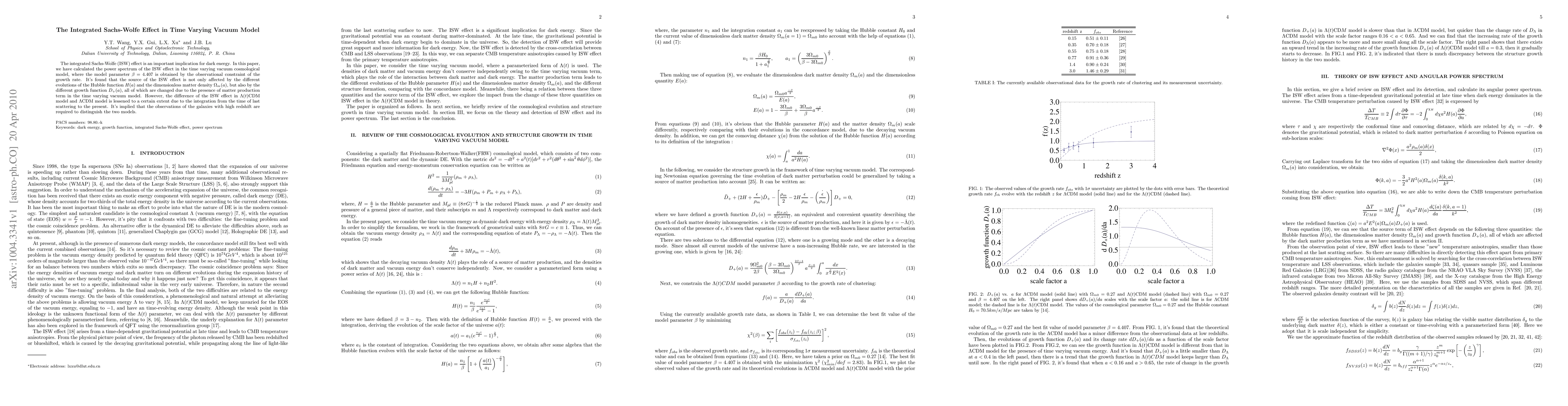 The integrated Sachs-Wolfe (ISW) effect is an important implication for dark energy. In this paper, we have calculated the power spectrum of the ISW effect in the time varying vacuum cosmological model, where the model parameter $\beta=4.407$ is obtained by the observational constraint of the growth rate. It's found that the source of the ISW effect is not only affected by the different evolutions of the Hubble function $H(a)$ and the dimensionless matter density $\Omega_m(a)$, but also by the different growth function $D_+(a)$, all of which are changed due to the presence of matter production term in the time varying vacuum model. However, the difference of the ISW effect in $\Lambda(t)\textmd{CDM}$ model and $\Lambda \textmd{CDM}$ model is lessened to a certain extent due to the integration from the time of last scattering to the present. It's implied that the observations of the galaxies with high redshift are required to distinguish the two models.