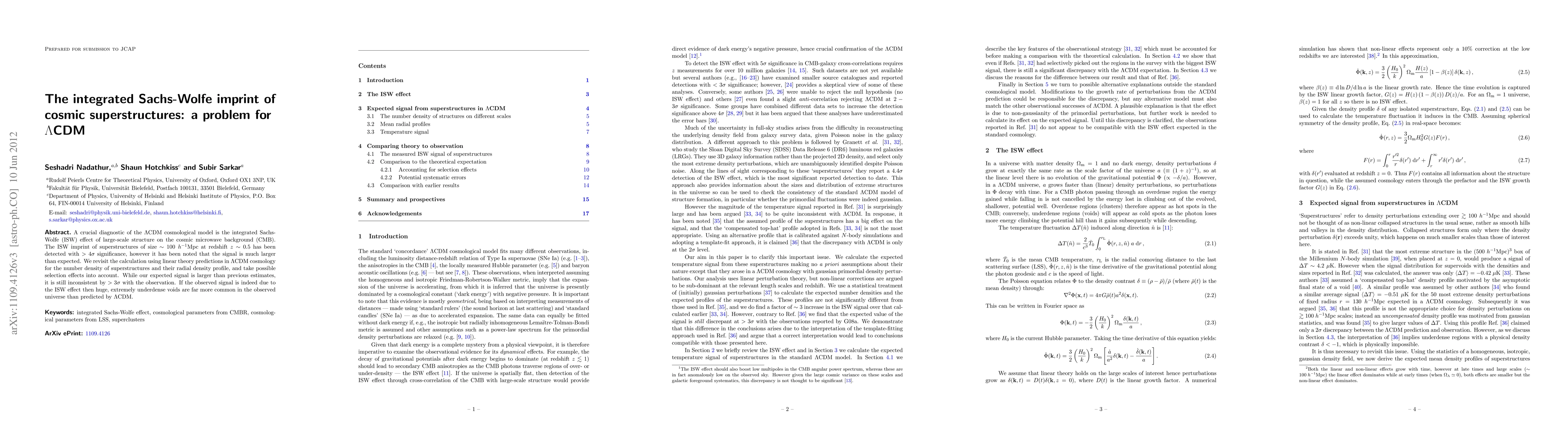 A crucial diagnostic of the \Lambda CDM cosmological model is the integrated Sachs-Wolfe (ISW) effect of large-scale structure on the cosmic microwave background (CMB). The ISW imprint of superstructures of size \sim100\;h^{-1} Mpc at redshift $z\sim0.5$ has been detected with $>4\sigma$ significance, however it has been noted that the signal is much larger than expected. We revisit the calculation using linear theory predictions in \Lambda CDM cosmology for the number density of superstructures and their radial density profile, and take possible selection effects into account. While our expected signal is larger than previous estimates, it is still inconsistent by $>3\sigma$ with the observation. If the observed signal is indeed due to the ISW effect then huge, extremely underdense voids are far more common in the observed universe than predicted by \Lambda CDM.
