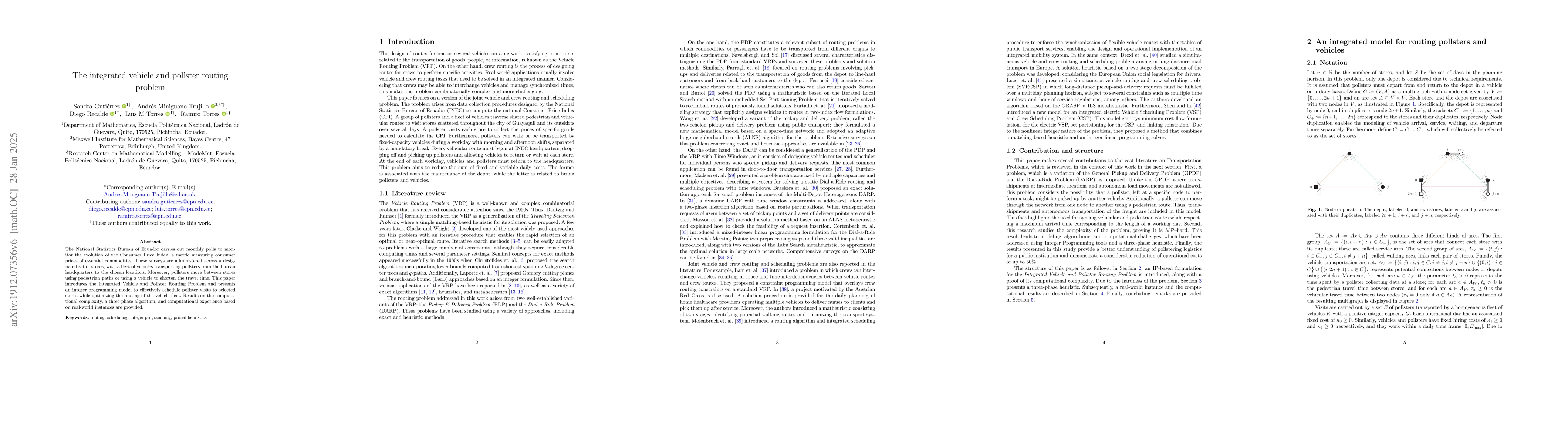 The National Statistics Bureau of Ecuador carries out monthly polls to monitor the evolution of an economic indicator called "Consumer Price Index", which measures the consumer prices of basic commodities. A set of stores is selected to apply these polls. Further, a set of vehicles transports pollsters from the headquarters of the bureau to the stores to perform this activity. Moreover, pollsters move between stores using pedestrian paths or using a vehicle to shorten the travel time. This paper introduces the Integrated Vehicle and Pollster Routing Problem alongside an integer program to model the integrated task of scheduling visits of pollsters to selected stores, as well as routing the vehicle fleet used to transport them. Results on the computational complexity of the aforementioned problem, a three-phase algorithm, and computational experience based on real-world instances are provided.