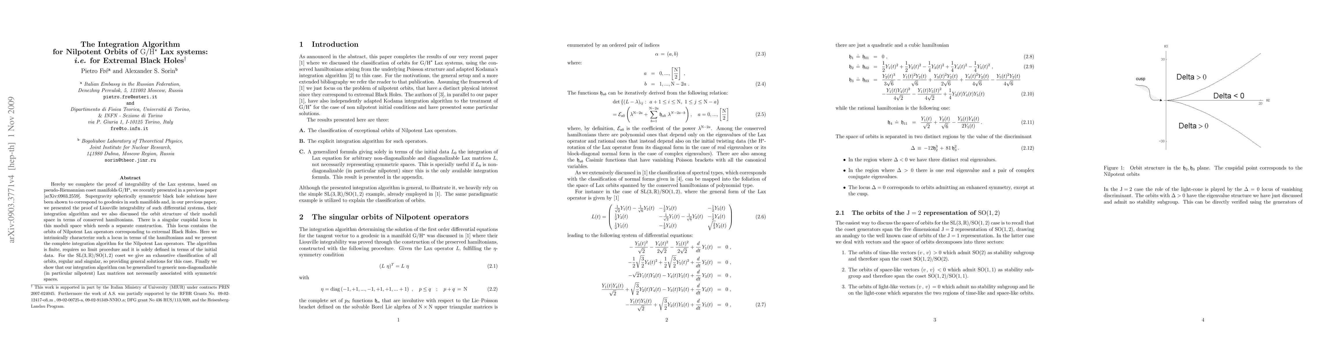 This paper completes the proof of integrability for Lax systems on pseudo-Riemannian coset manifolds G/H* and presents a finite integration algorithm for Nilpotent Lax operators, specifically applied to extremal black holes. It also classifies orbits for the SL(3;R)/SO(1,2) coset and generalizes the algorithm for non-diagonalizable Lax matrices.