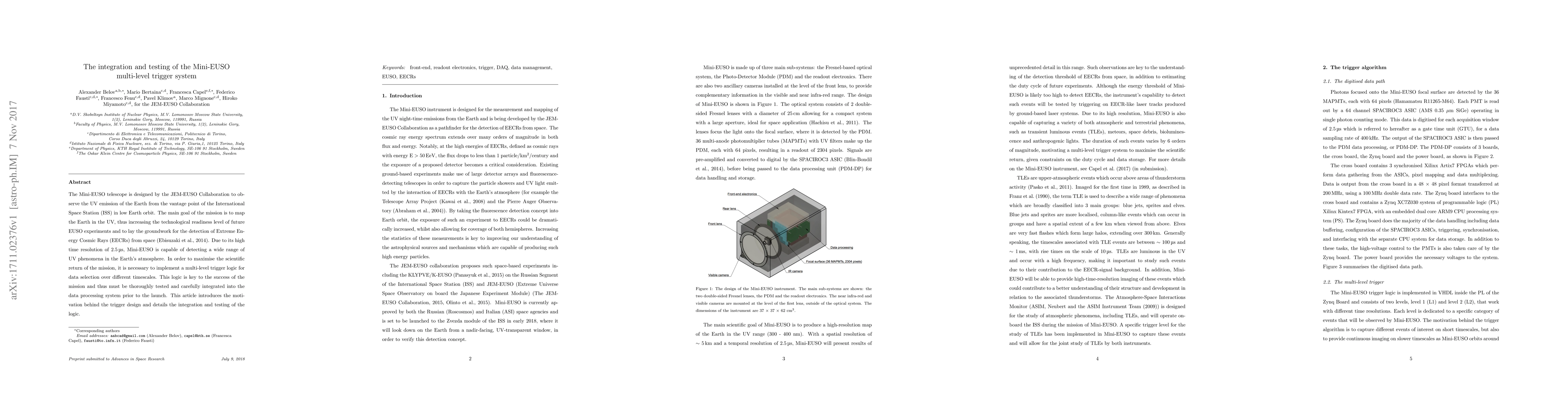 This paper discusses the design, integration, and testing of the multi-level trigger system for the Mini-EUSO telescope, which aims to observe Earth's UV emissions from the ISS to detect Extreme Energy Cosmic Rays and map the Earth in UV. The thorough testing of the trigger system is crucial for maximizing the mission's scientific return.