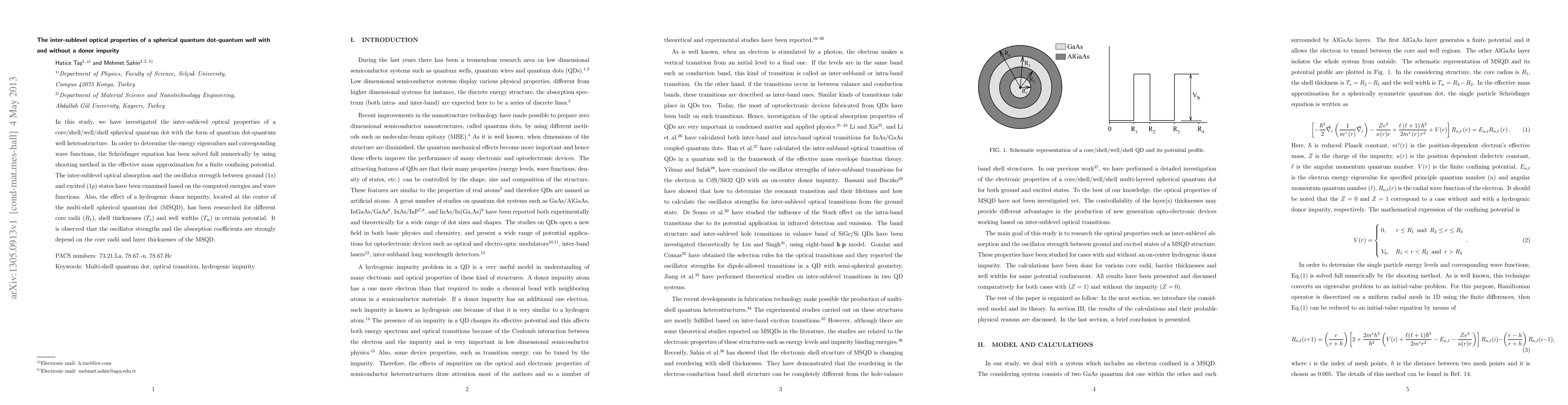 This study numerically investigates the optical properties of a spherical quantum dot-quantum well heterostructure, focusing on inter-sublevel optical absorption and oscillator strength. The effect of a central hydrogenic donor impurity on these properties is also examined, revealing strong dependence on core radii and layer thicknesses.