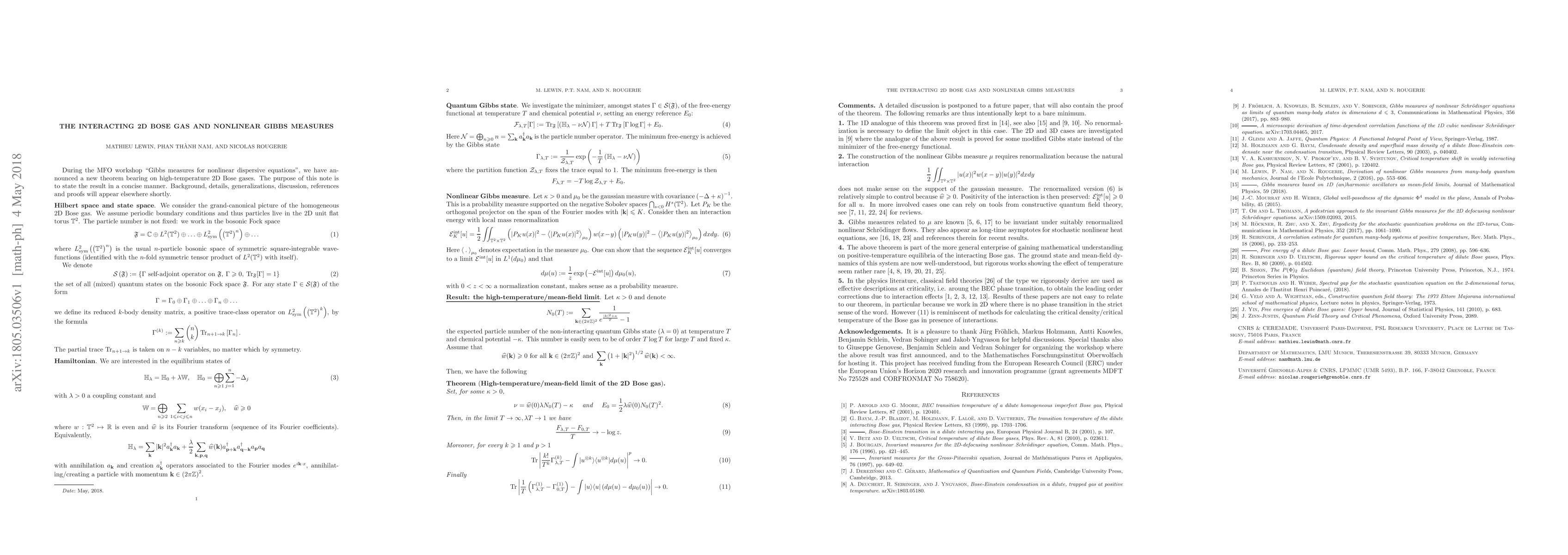 A new theorem establishes a connection between quantum fields and classical fields at high temperatures in 2D Bose gases, showing that the grand-canonical quantum Gibbs state can reduce to a nonlinear Gibbs measure.