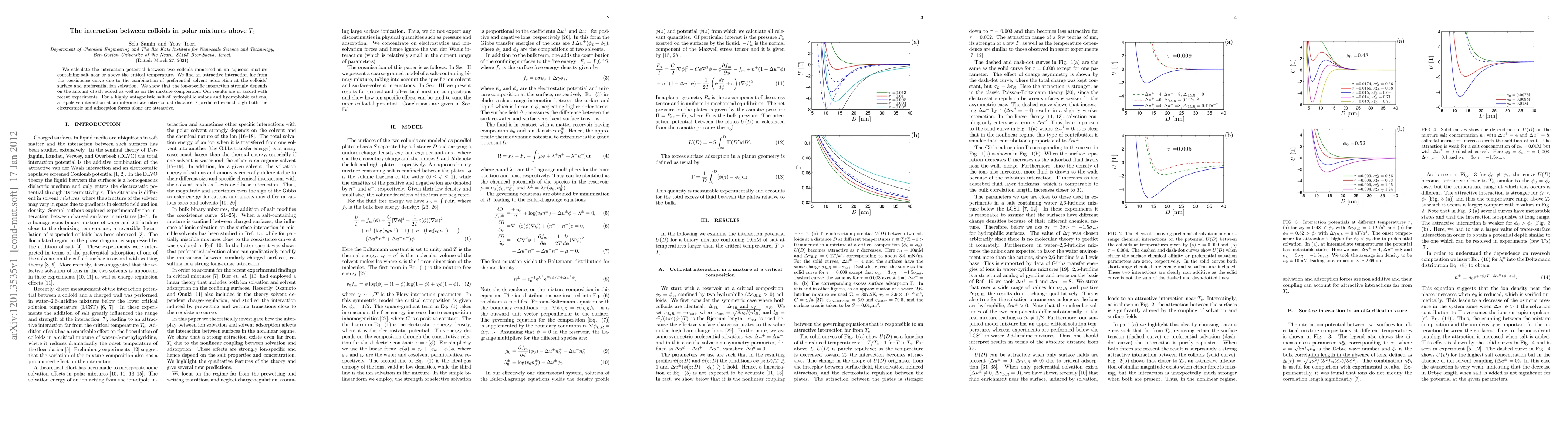 This paper investigates the interaction potential between colloids in polar mixtures above the critical temperature, revealing an attractive interaction due to solvent and ion solvation effects. It predicts a repulsive interaction for certain salts, despite individual attractive forces, aligning with recent experimental findings.