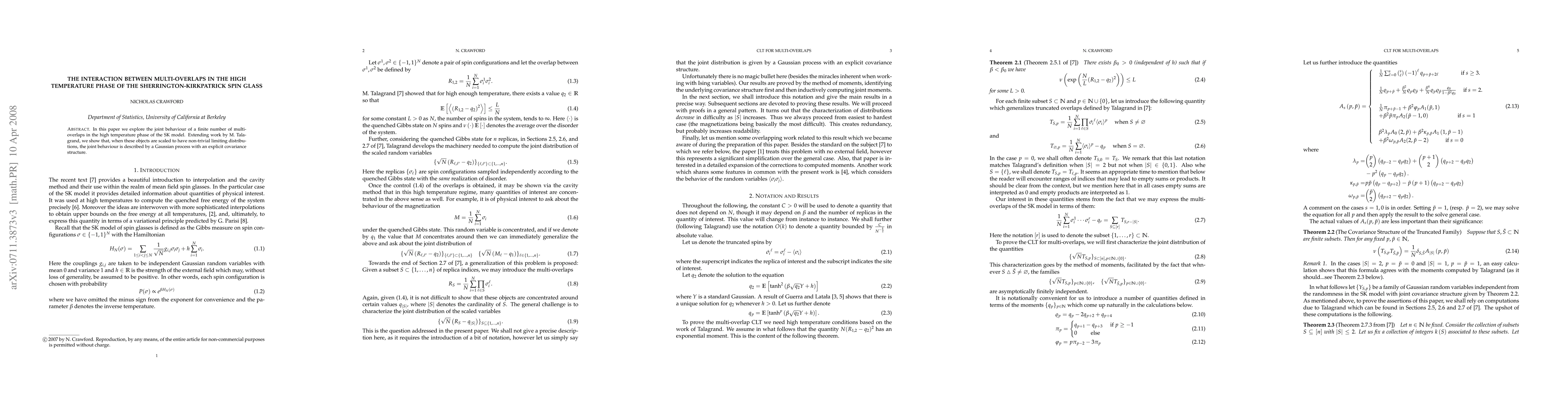 We explore the joint behavior of a finite number of multi-overlaps in the high temperature phase of the SK model. Extending work by M. Talagrand, we show that, when these objects are scaled to have non-trivial limiting distributions, the joint behavior is described by a Gaussian process with an explicit covariance structure.