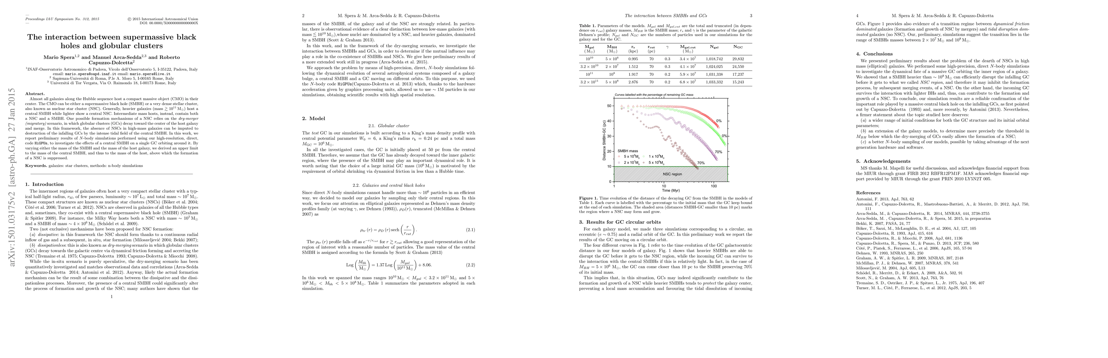 Almost all galaxies along the Hubble sequence host a compact massive object (CMO) in their center. The CMO can be either a supermassive black hole (SMBH) or a very dense stellar cluster, also known as nuclear star cluster (NSC). Generally, heavier galaxies (mass $\gtrsim 10^{11}\mathrm{M}_{\odot}$ ) host a central SMBH while lighter show a central NSC. Intermediate mass hosts, instead, contain both a NSC and a SMBH. One possible formation mechanisms of a NSC relies on the dry-merger (migratory) scenario, in which globular clusters (GCs) decay toward the center of the host galaxy and merge. In this framework, the absence of NSCs in high-mass galaxies can be imputed to destruction of the infalling GCs by the intense tidal field of the central SMBH. In this work, we report preliminary results of N-body simulations performed using our high-resolution, direct, code HiGPUs, to investigate the effects of a central SMBH on a single GC orbiting around it. By varying either the mass of the SMBH and the mass of the host galaxy, we derived an upper limit to the mass of the central SMBH, and thus to the mass of the host, above which the formation of a NSC is suppressed.