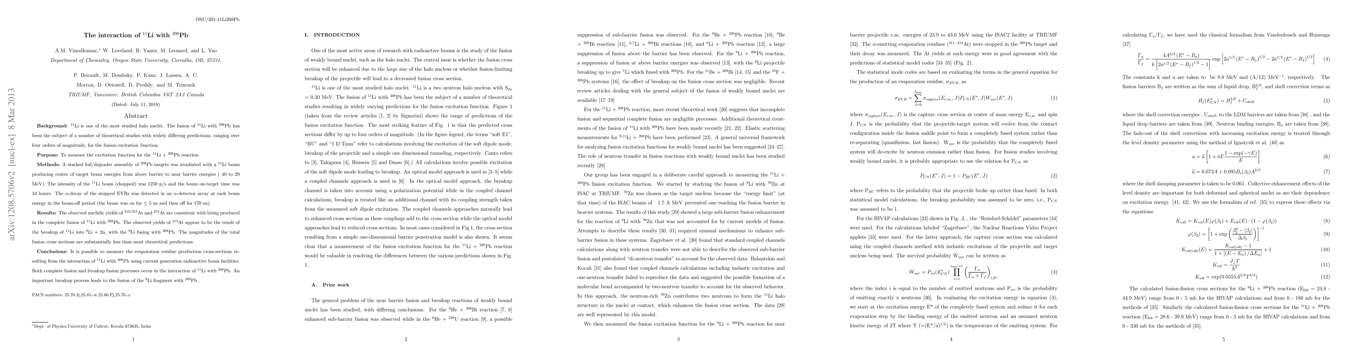 The reaction of 11Li with 208Pb mostly results in breakup, with only a small fraction (<11%) leading to complete fusion, according to this experiment that measured the excitation function for the reaction.