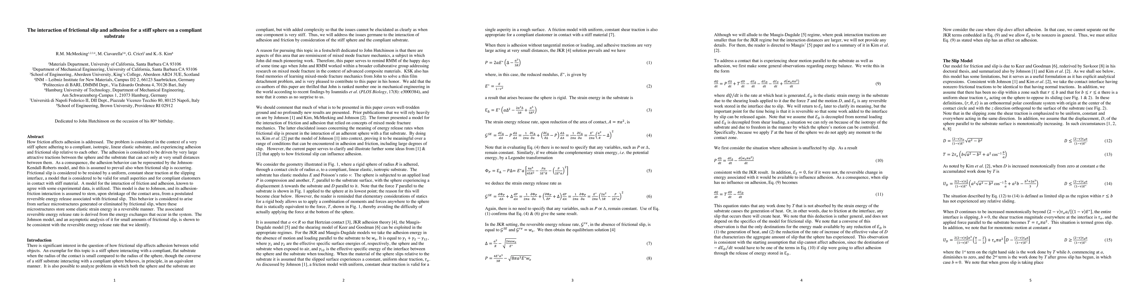 Researchers studied how friction affects adhesion between a stiff sphere and a compliant substrate, finding that friction can alter adhesion behavior and derive a model for their interaction. The study's findings have implications for understanding the mechanics of contact in various materials and applications.