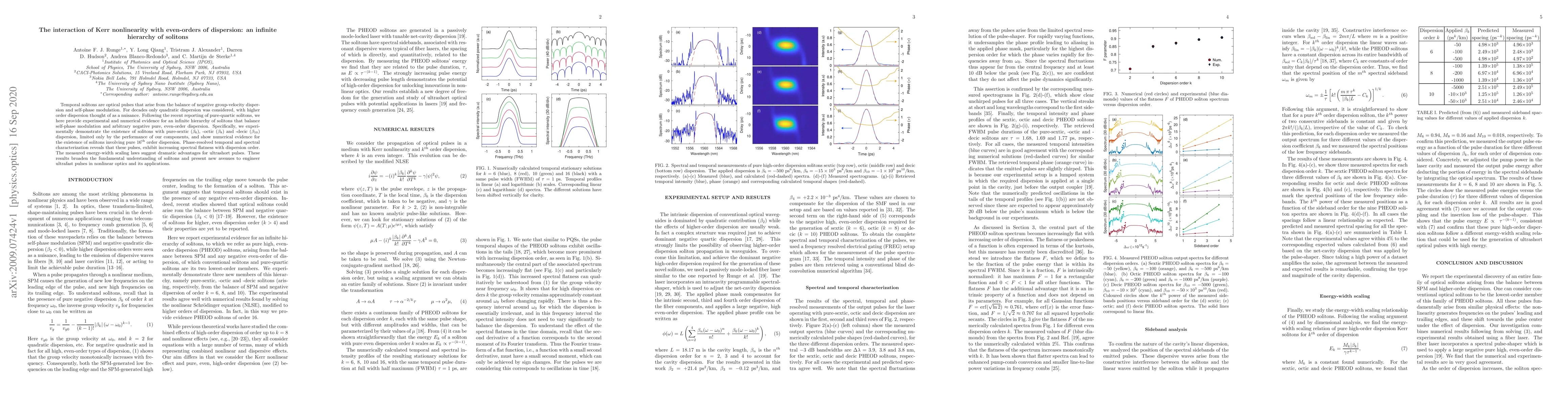 Temporal solitons are optical pulses that arise from the balance of negative group-velocity dispersion and self-phase modulation. For decades only quadratic dispersion was considered, with higher order dispersion thought of as a nuisance. Following the recent reporting of pure-quartic solitons, we here provide experimental and numerical evidence for an infinite hierarchy of solitons that balance self-phase modulation and arbitrary negative pure, even-order dispersion. Specifically, we experimentally demonstrate the existence of solitons with pure-sextic ($\beta_6$), -octic ($\beta_8$) and -decic ($\beta_{10}$) dispersion, limited only by the performance of our components, and show numerical evidence for the existence of solitons involving pure $16^{\rm th}$ order dispersion. Phase-resolved temporal and spectral characterization reveals that these pulses, exhibit increasing spectral flatness with dispersion order. The measured energy-width scaling laws suggest dramatic advantages for ultrashort pulses. These results broaden the fundamental understanding of solitons and present new avenues to engineer ultrafast pulses in nonlinear optics and its applications.