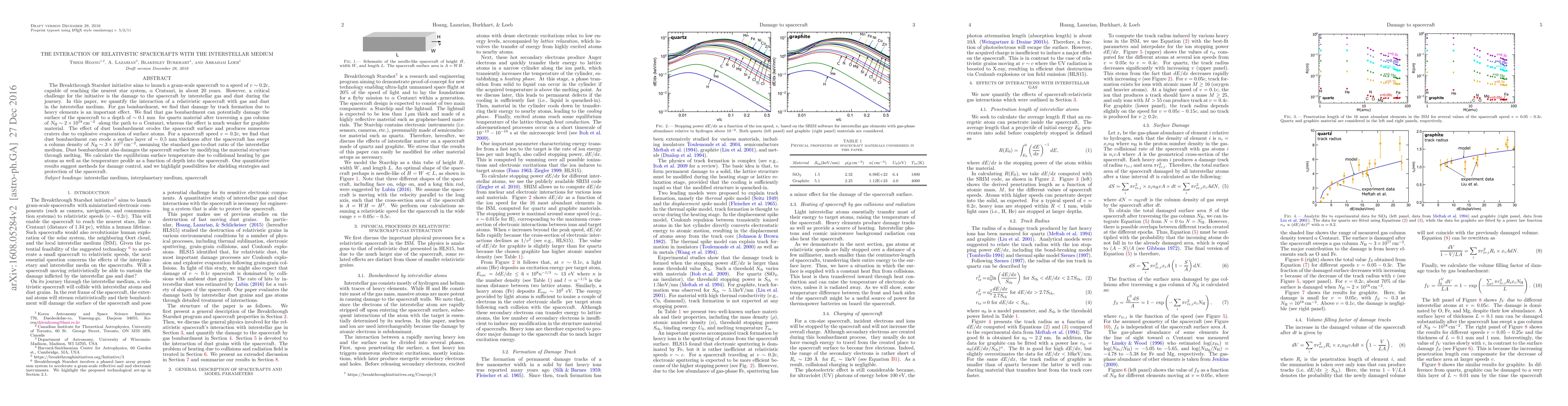 This paper quantifies the interaction of relativistic spacecrafts with interstellar gas and dust, finding significant damage from bombardment by heavy elements and dust. It suggests that quartz surfaces may suffer up to 0.1 mm of damage from gas, while dust can erode up to 0.5 mm of material, necessitating potential shielding strategies for the Breakthrough Starshot initiative.