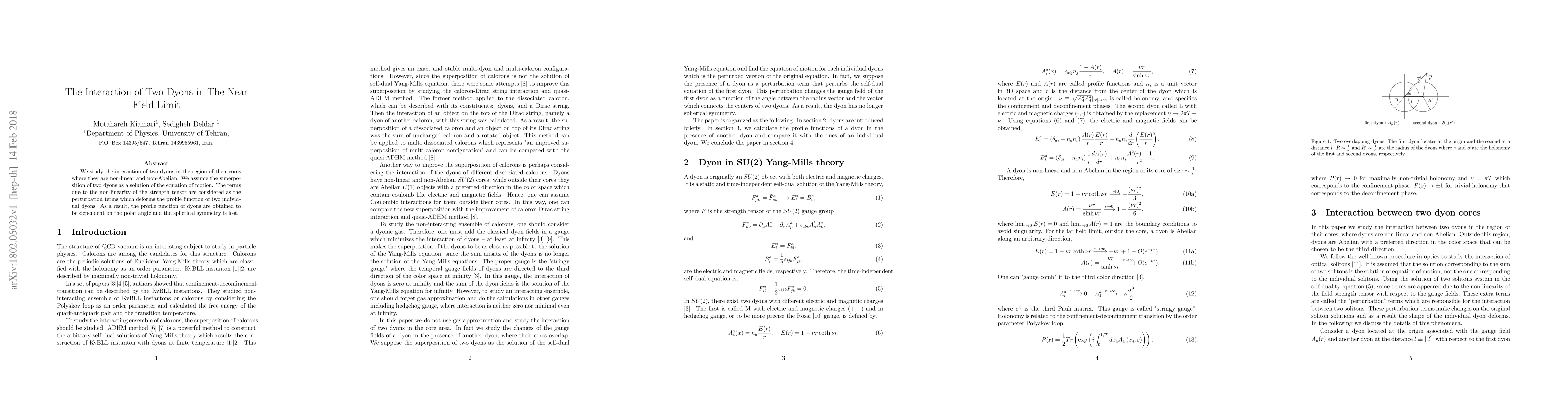This paper investigates the interaction of two dyons in their near-field, non-linear, and non-Abelian region, revealing that the non-linear terms deform the profile function, breaking the spherical symmetry and making it dependent on the polar angle.