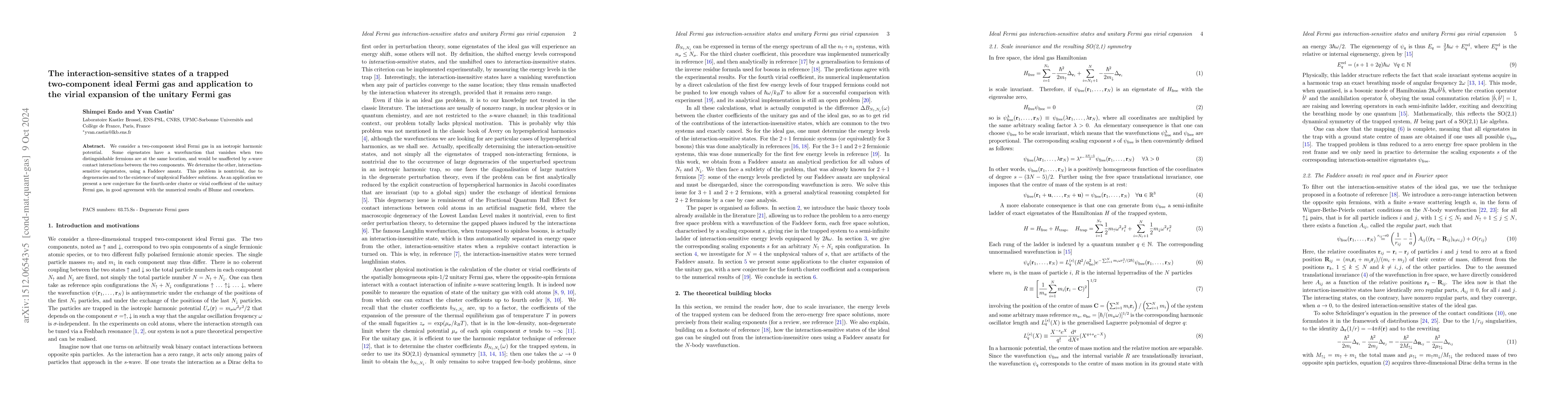 This paper investigates the eigenstates of a trapped two-component ideal Fermi gas, identifying interaction-sensitive states using a Faddeev ansatz. It also proposes a new conjecture for the fourth-order virial coefficient of the unitary Fermi gas, aligning well with numerical results.