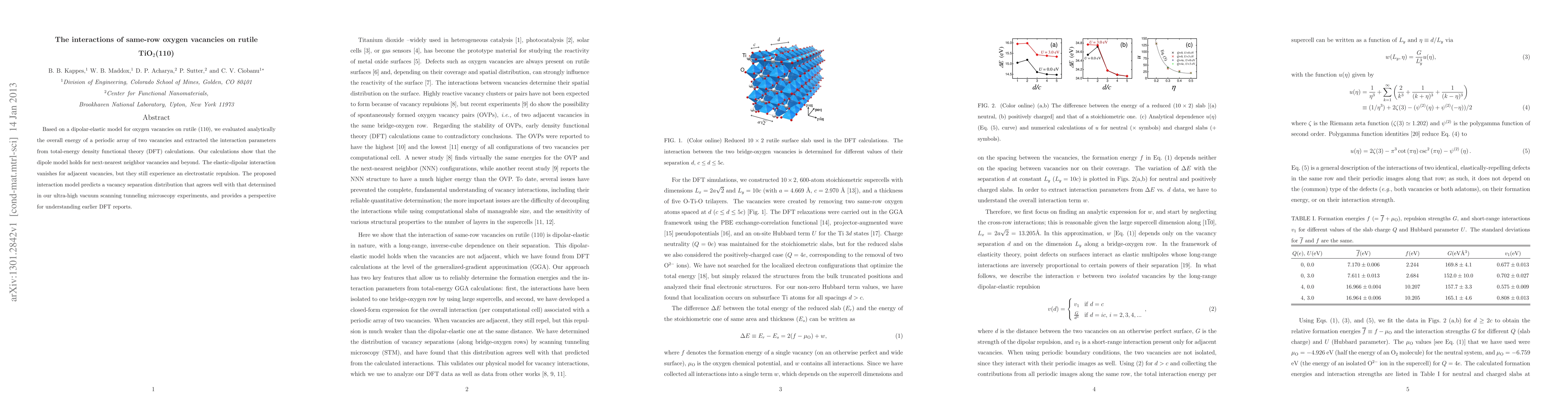 This study models oxygen vacancies on rutile TiO2 to understand their interactions, finding that adjacent vacancies repel each other due to electrostatic forces, while next-nearest neighbor vacancies experience a dipole-dipole attraction.