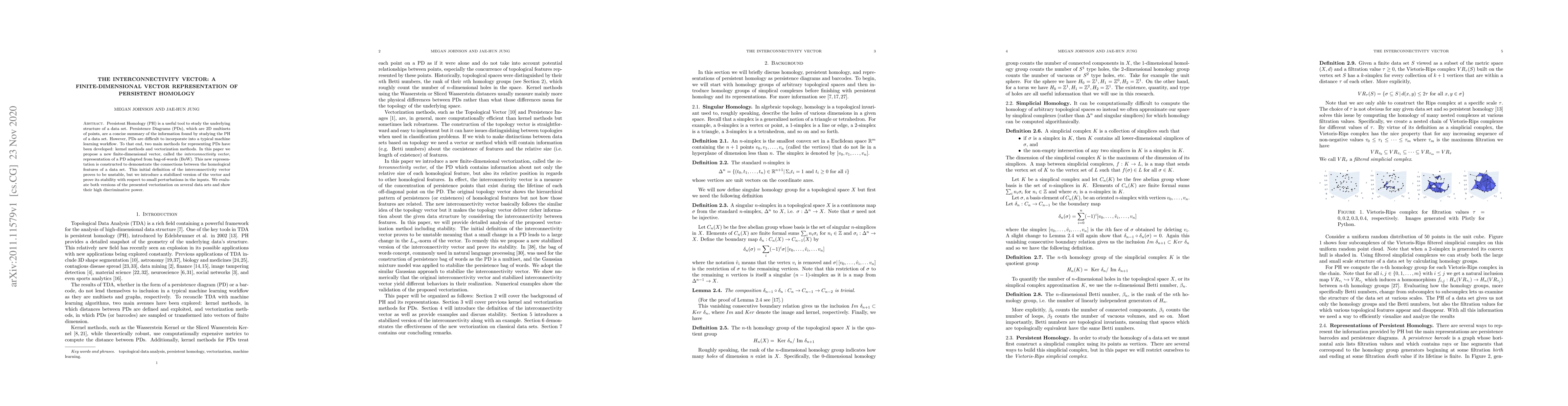 Researchers propose a new vector representation of persistence diagrams, called the interconnectivity vector, to improve machine learning workflows; the new representation demonstrates connections between homological features and shows high discriminative power on several data sets.