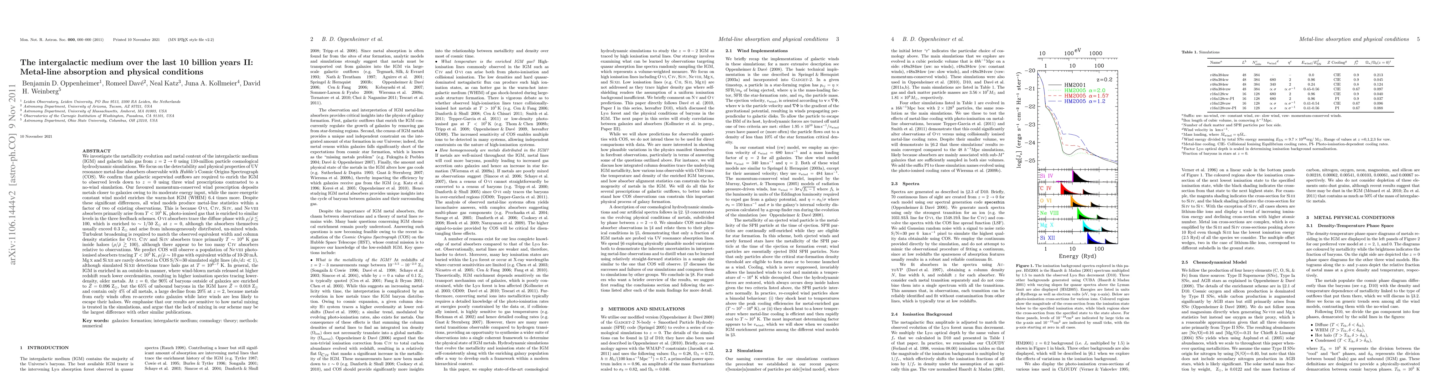 We investigate the metallicity evolution and content of the intergalactic medium (IGM) and galactic halo gas from z=2->0 using 110-million particle cosmological hydrodynamic simulations. We focus on the detectability and physical properties of UV resonance metal-line absorbers observable with Hubble's Cosmic Origins Spectrograph (COS). We confirm that galactic superwind outflows are required to enrich the IGM to observed levels down to z=0 using three wind prescriptions contrasted to a no-wind simulation. Our favoured momentum-conserved wind prescription deposits metals closer to galaxies owing to its moderate energy input, while the more energetic constant wind model enriches the warm-hot IGM 6.4x more. Despite these significant differences, all wind models produce metal-line statistics within a factor of two of existing observations. This is because OVI, CIV, SiIV, and NeVIII absorbers primarily arise from T<10^5 K, photo-ionised gas that is enriched to similar levels in the three feedback schemes. OVI absorbers trace the diffuse phase with delta<100, which is enriched to ~1/50 Zsol at z=0, although the absorbers themselves usually exceed 0.3 Zsol and arise from inhomogeneously distributed, un-mixed winds. CIV and SiIV absorbers trace primarily T~10^4 K gas inside haloes. We predict COS will observe a population of NeVIII photo-ionised absorbers tracing T<10^5 K, delta~10 gas. MgX and SiXII are rarely detected in COS S/N=30 simulated sight lines although detections trace T=10^(6-7) K halo gas. In general, the IGM is enriched in an outside-in manner, where wind-blown metals released at higher redshift reach lower overdensities, resulting in higher ionisation species tracing lower-density, older metals. At z=0, the 90% of baryons outside of galaxies are enriched to 0.096 Zsol, but the 65% of unbound baryons in the IGM have 0.018 Zsol and contain only 4% of all metals.