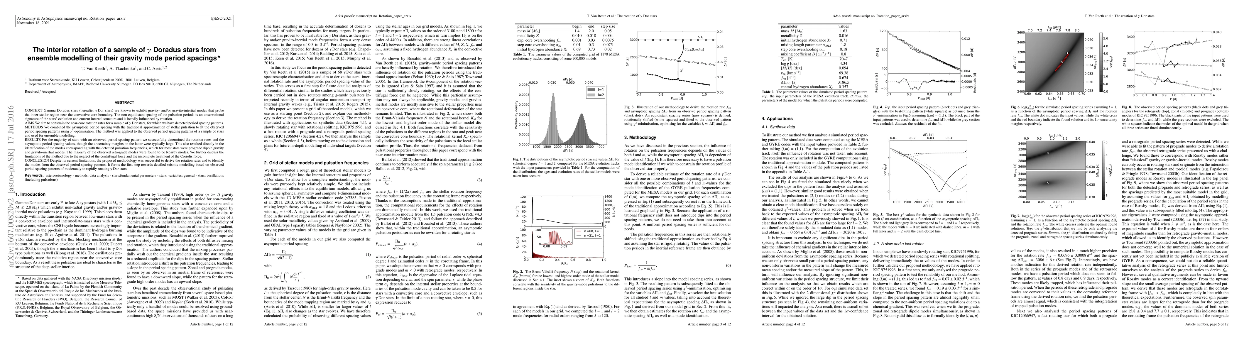This paper presents a method to determine near-core rotation rates in gamma Doradus stars by analyzing their gravity mode period spacings, successfully identifying pulsation modes and rotation rates for most stars despite limitations, marking a first step towards detailed seismic modelling.
