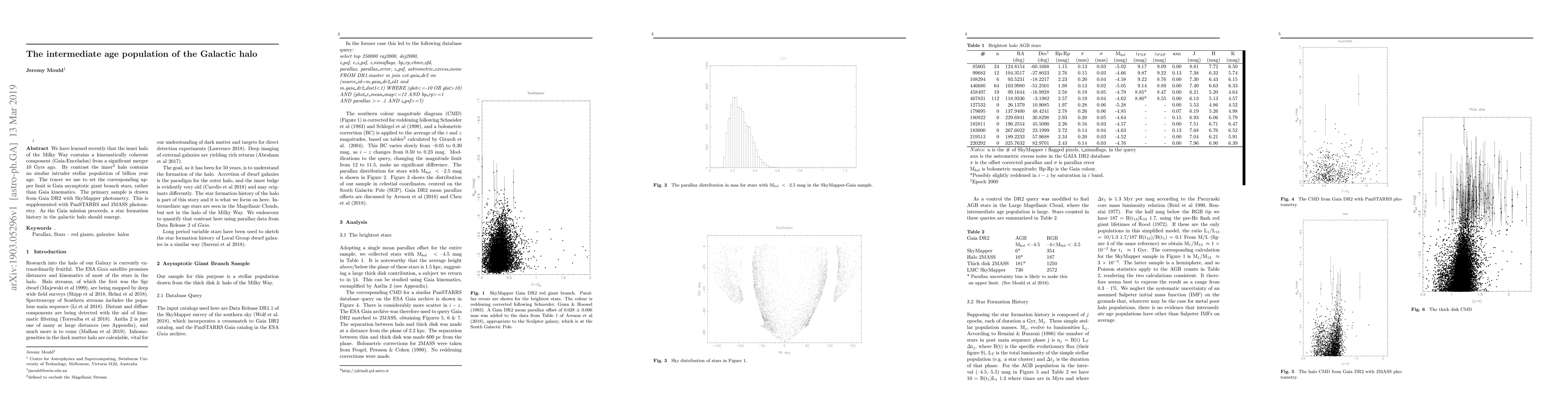 We have learned recently that the inner halo of the Milky Way contains a kinematically coherent component (Gaia-Enceladus) from a significant merger 10 Gyrs ago. By contrast the inner halo (defined to exclude the Magellanic Stream) contains no similar intruder stellar population of billion year age. The tracer we use to set the corresponding upper limit is Gaia asymptotic giant branch stars, rather than Gaia kinematics. The primary sample is drawn from Gaia DR2 with SkyMapper photometry. This is supplemented with PanSTARRS and 2MASS photometry. As the Gaia mission proceeds, a star formation history in the galactic halo should emerge.