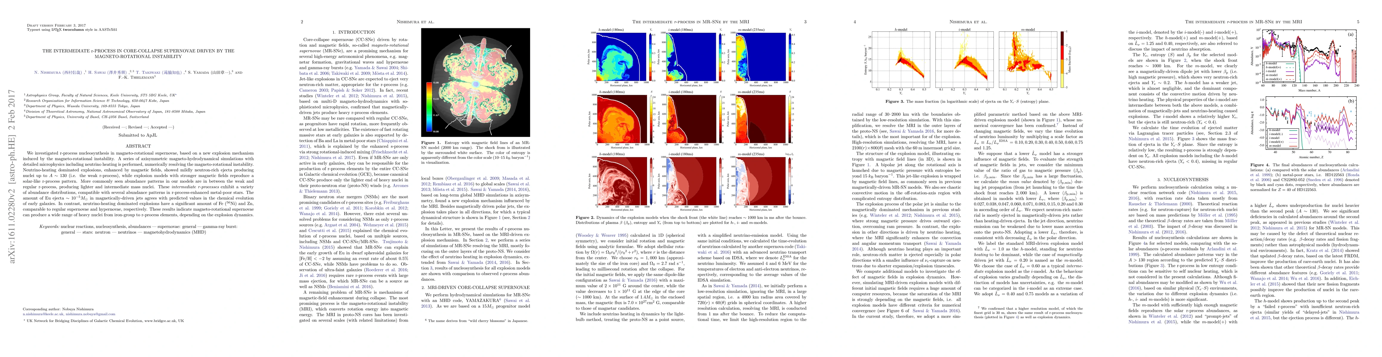 The paper presents detailed axisymmetric magneto-hydrodynamical simulations with advanced microphysics, including neutrino heating, to resolve the magneto-rotational instability and study r-process nucleosynthesis in core-collapse supernovae.