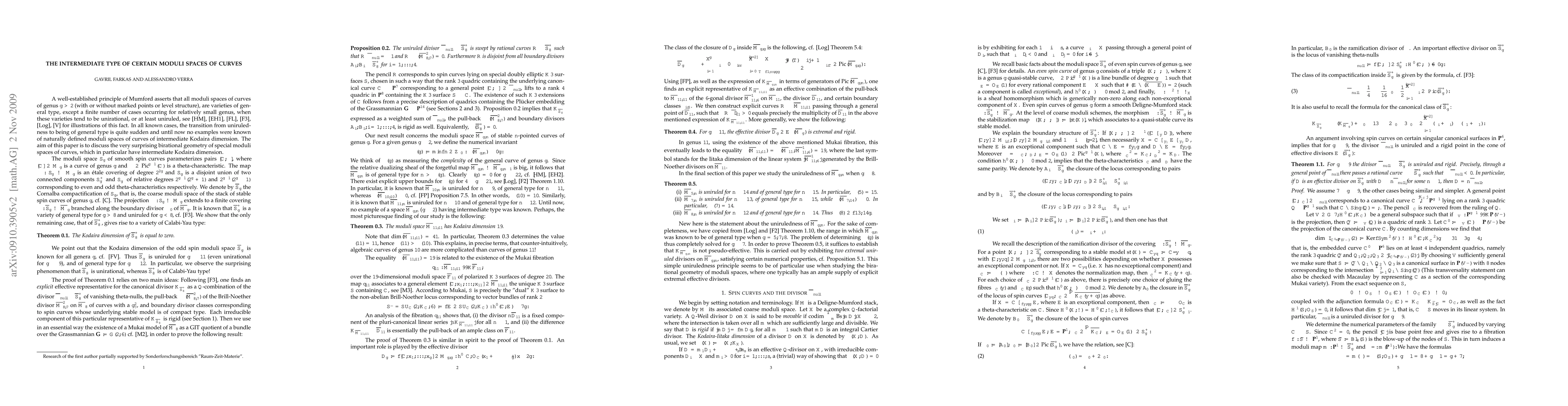A well-known principle of Mumford asserts that all moduli spaces of curves are varieties of general type, except a finite number of cases that occur for relatively small genus, when these varieties tend to be uniruled. In all known cases, the transition from uniruledness to being of general type is quite sudden. For the first time, we show that naturally defined moduli spaces of curves can have intermediate birational type. We show that the moduli space of even spin curves of genus 8 is of Calabi-Yau type. Then we prove that the 41-dimensional moduli space M_{11, 11} of 11-pointed curves of genus 11, has Kodaira dimension 19.