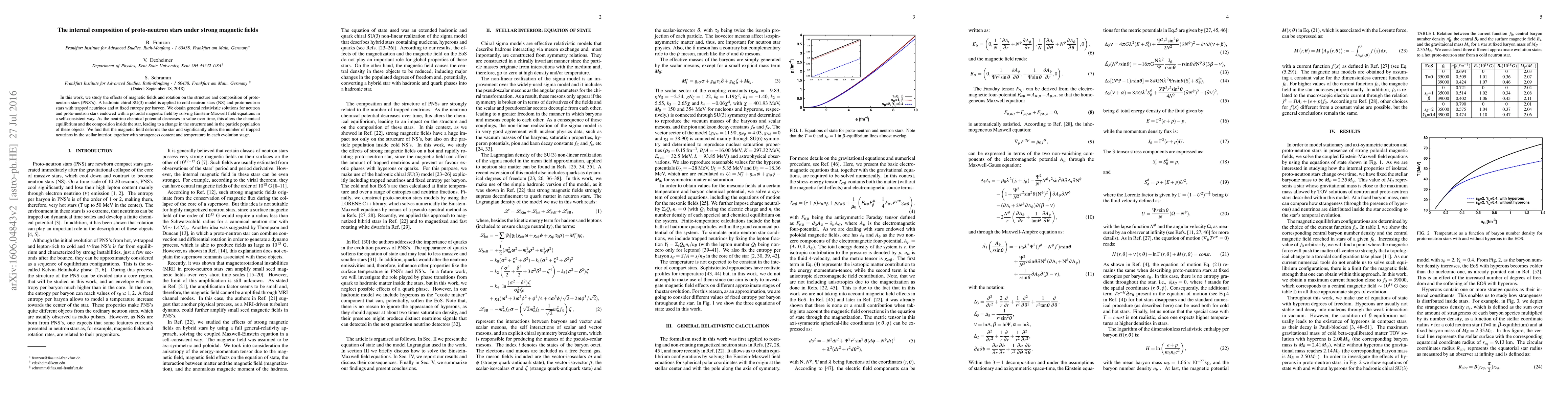 This paper investigates how strong magnetic fields and rotation affect the structure and composition of proto-neutron stars, using a hadronic chiral SU(3) model to simulate their evolution. The study finds that magnetic fields significantly alter the star's deformation, trapped neutrinos, strangeness content, and temperature during different evolutionary stages.