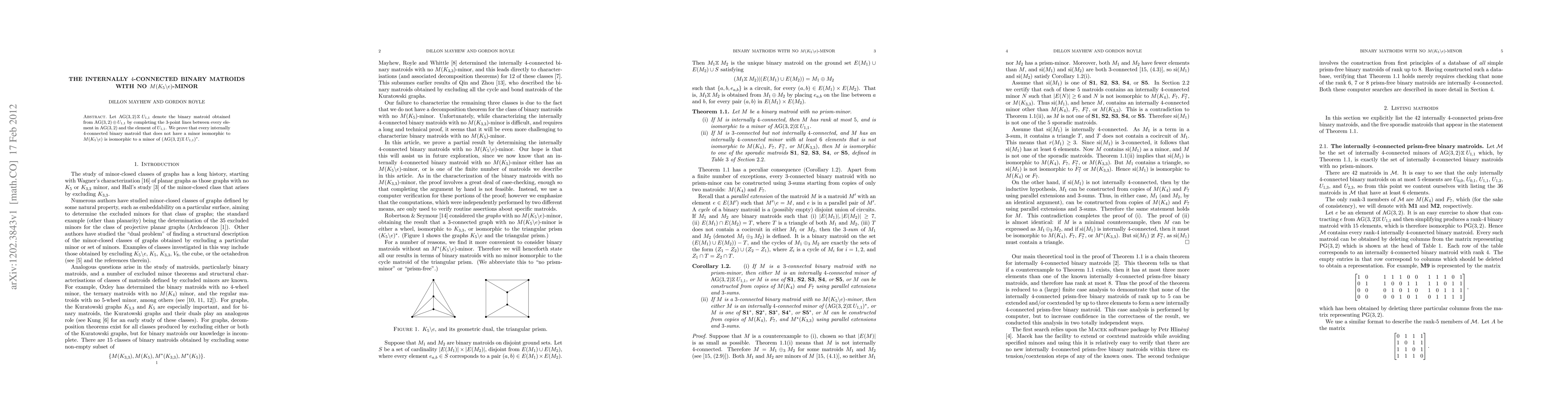 Let AG(3,2)xU(1,1) denote the binary matroid obtained from the direct sum of AG(3,2) and a coloop by completing the 3-point lines between every element in AG(3,2) and the coloop. We prove that every internally 4-connected binary matroid that does not have a minor isomorphic to M(K5\e) is isomorphic to a minor of (AG(3,2)xU(1,1))*.