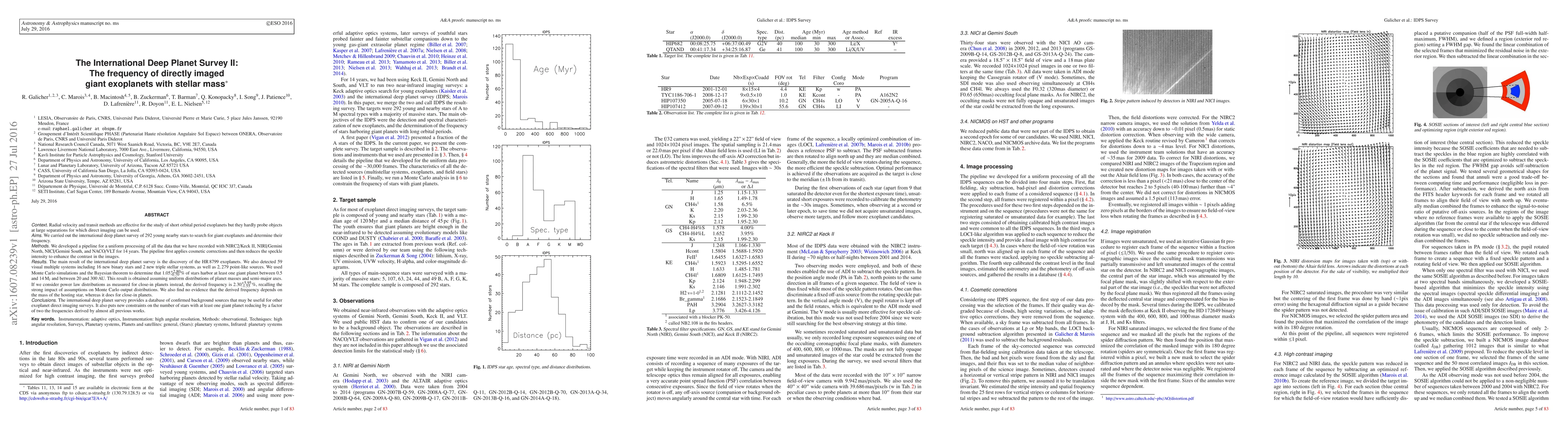 The International Deep Planet Survey II discovered giant exoplanets through direct imaging of 292 nearby stars, finding that 1.05% host such planets, with no correlation to host star mass. The survey also identified numerous stellar systems and point-like sources, providing valuable data for future exoplanet research.