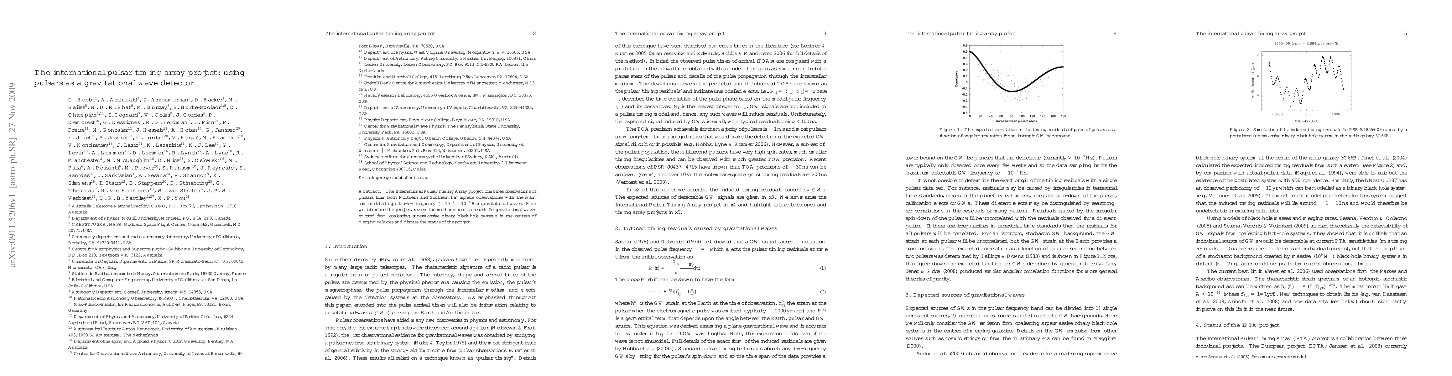 The International Pulsar Timing Array project aims to detect ultra-low frequency gravitational waves by combining pulsar observations from both hemispheres. The project reviews methods for detecting waves from supermassive binary black-hole systems and discusses its current status.