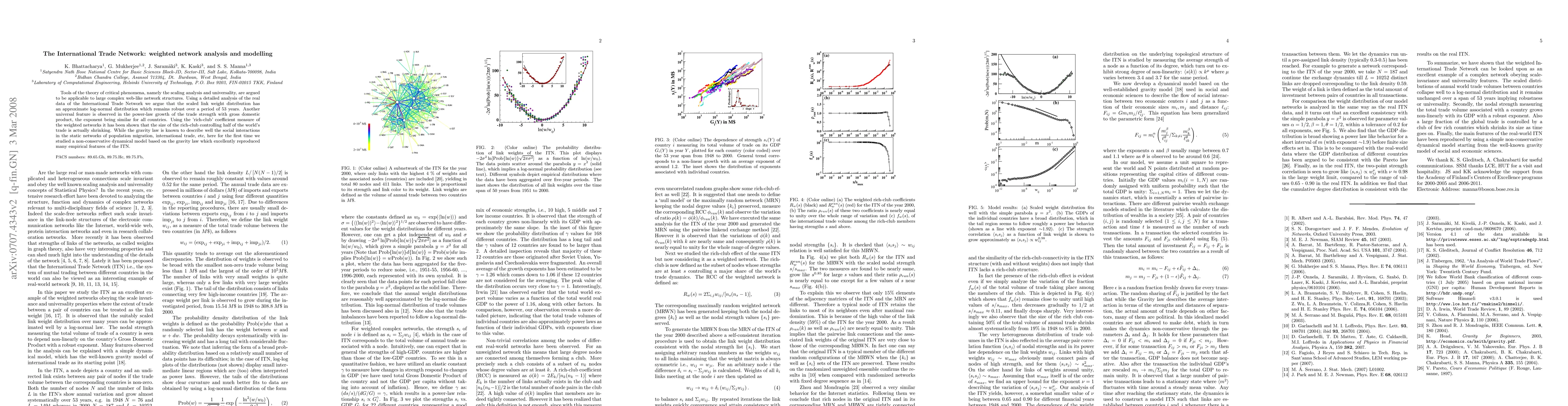 This paper applies critical phenomena theory to analyze the International Trade Network, finding a log-normal distribution in scaled link weights and a power-law growth of trade strength with GDP. It also reveals a shrinking "rich-club" and validates a dynamical model based on the gravity law that accurately reproduces empirical features.