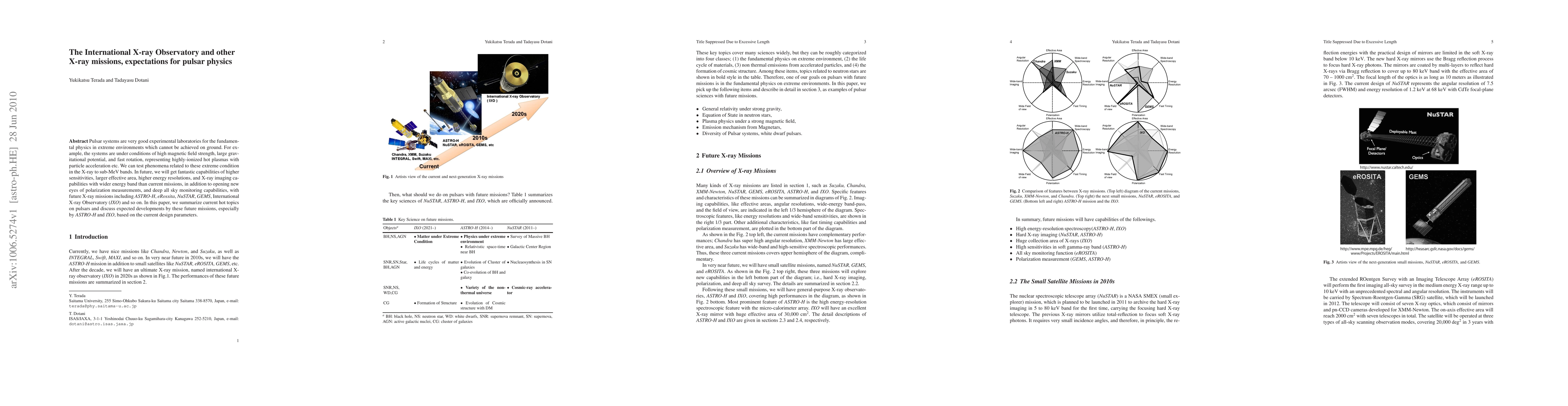 This paper discusses how future X-ray observatories, including the International X-ray Observatory (IXO) and ASTRO-H, will enhance our understanding of pulsar physics by providing higher sensitivities and advanced imaging capabilities. It highlights the potential for these missions to explore extreme environments in pulsar systems, such as high magnetic fields and fast rotation.