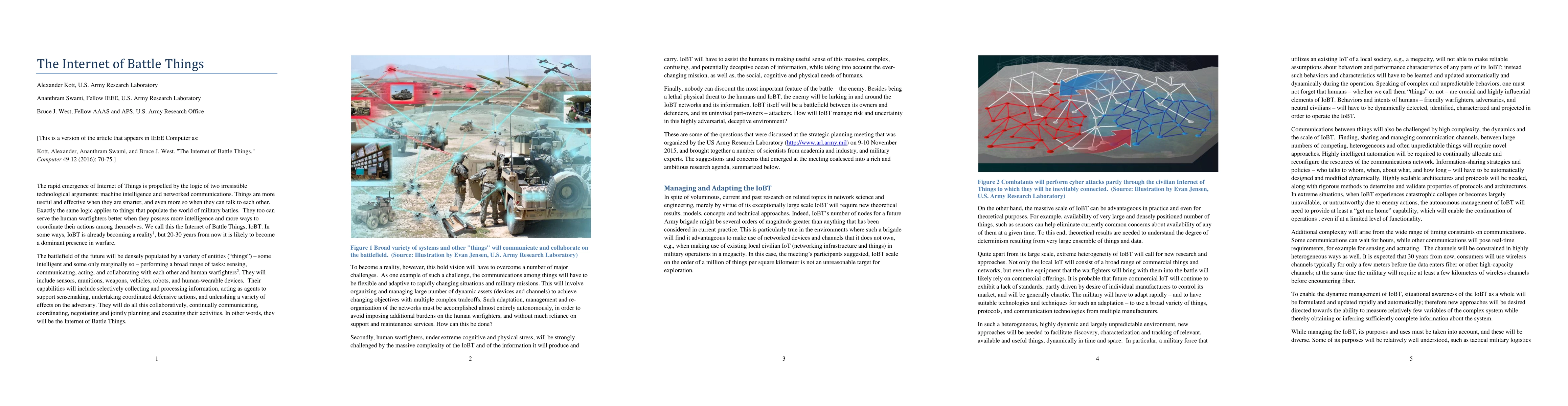 The paper discusses the concept of the Internet of Battle Things (IoBT), envisioning a future battlefield filled with diverse entities collaborating in sensing, communication, and action. It highlights the challenges, such as the need for flexible and adaptive communication, and outlines key research directions to realize this vision.