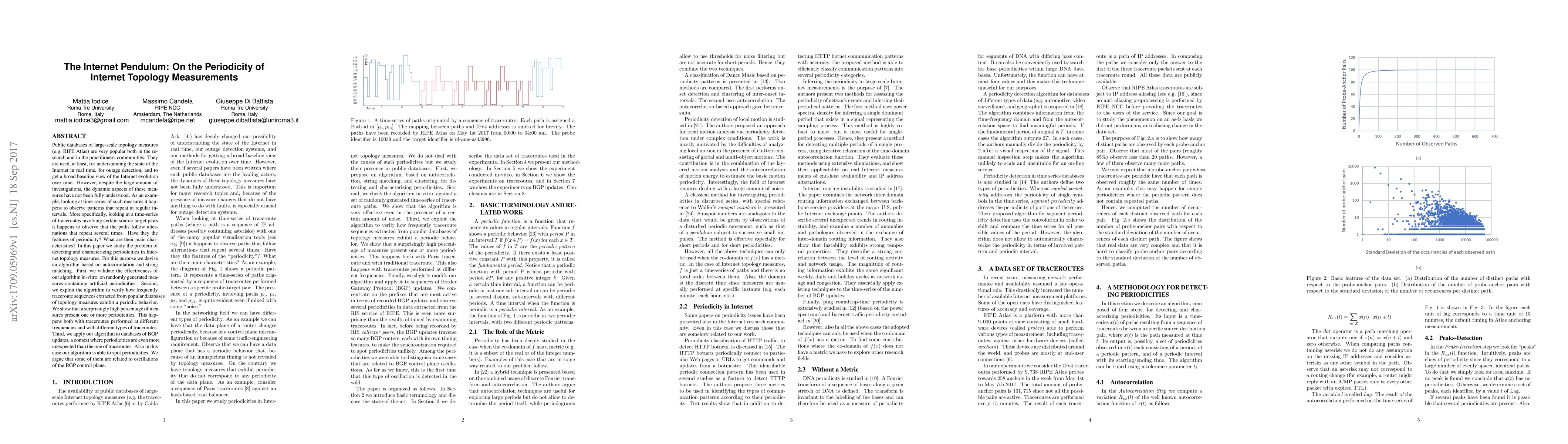 This paper investigates the periodicity in Internet topology measures using an algorithm based on autocorrelation and string matching. The study reveals that a significant proportion of traceroute sequences and BGP updates exhibit periodic behavior, suggesting underlying oscillations in the BGP control plane.