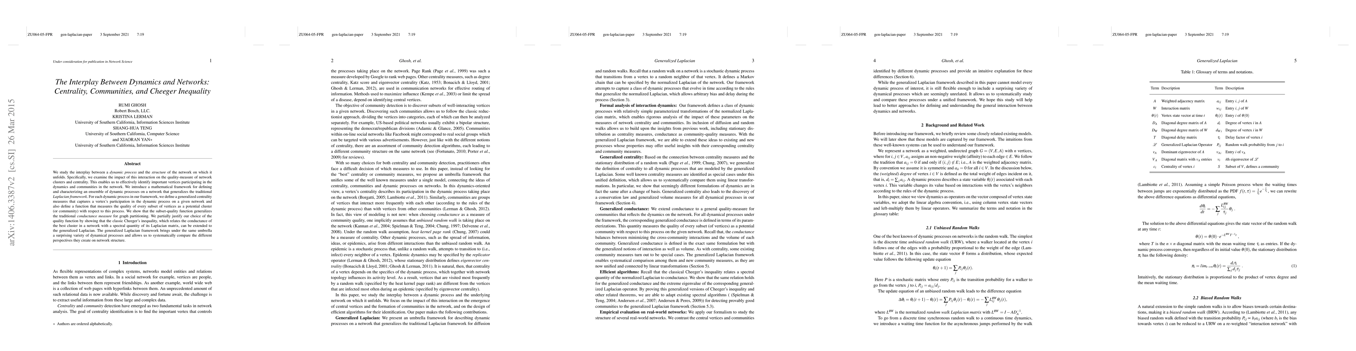 We study the interplay between a dynamic process and the structure of the network on which it is defined. Specifically, we examine the impact of this interaction on the quality-measure of network clusters and node centrality. This enables us to effectively identify network communities and important nodes participating in the dynamics. As the first step towards this objective, we introduce an umbrella framework for defining and characterizing an ensemble of dynamic processes on a network. This framework generalizes the traditional Laplacian framework to continuous-time biased random walks and also allows us to model some epidemic processes over a network. For each dynamic process in our framework, we can define a function that measures the quality of every subset of nodes as a potential cluster (or community) with respect to this process on a given network. This subset-quality function generalizes the traditional conductance measure for graph partitioning. We partially justify our choice of the quality function by showing that the classic Cheeger's inequality, which relates the conductance of the best cluster in a network with a spectral quantity of its Laplacian matrix, can be extended from the Laplacian-conductance setting to this more general setting.