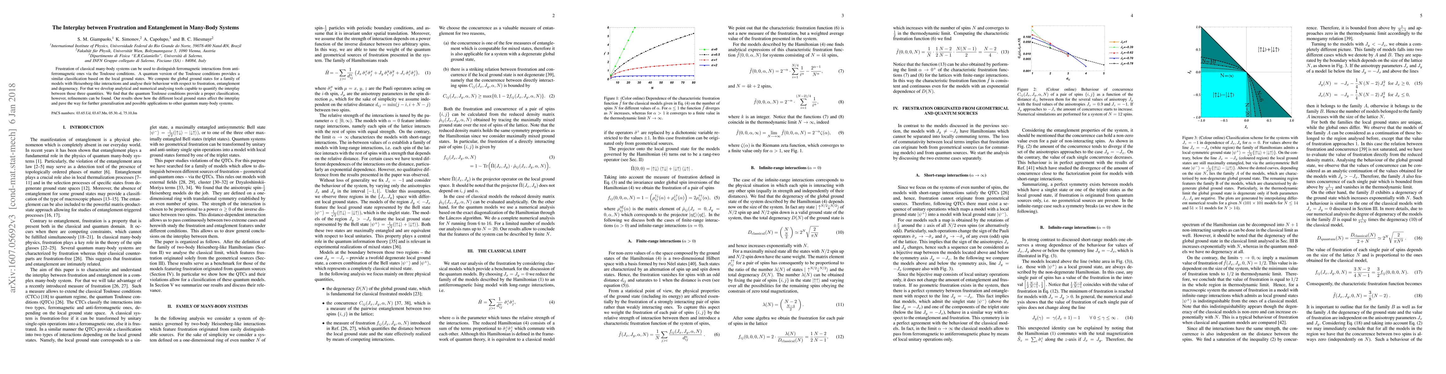 This paper explores the relationship between frustration, entanglement, and degeneracy in quantum many-body systems using Heisenberg-like interactions. It develops analytical and numerical tools to classify these systems based on quantum Toulouse conditions, revealing a nuanced interplay that can inform broader applications in quantum physics.