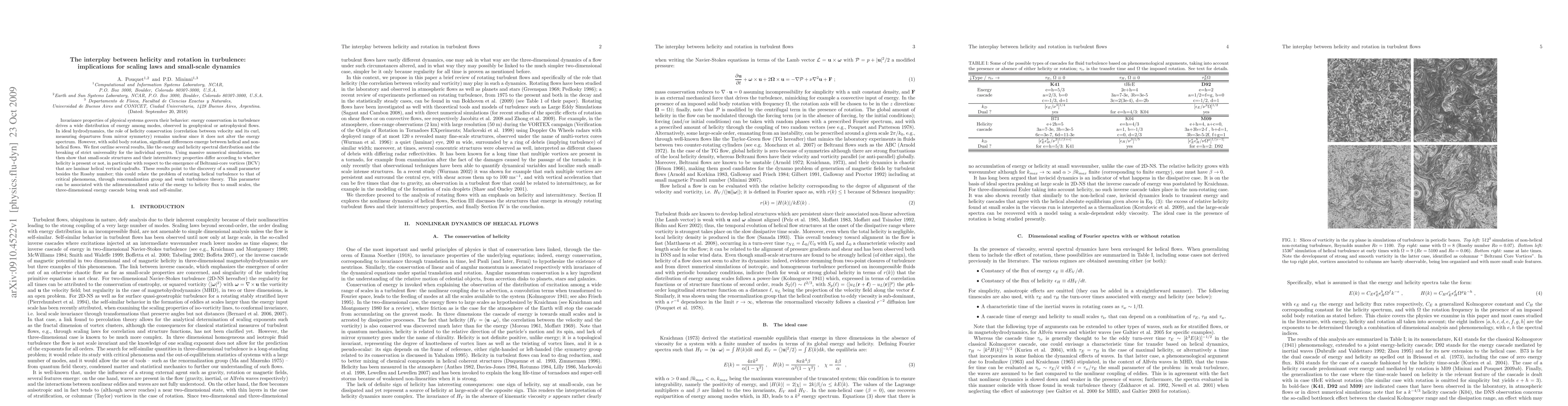 Invariance properties of physical systems govern their behavior: energy conservation in turbulence drives a wide distribution of energy among modes, observed in geophysical or astrophysical flows. In ideal hydrodynamics, the role of helicity conservation (correlation between velocity and its curl, measuring departures from mirror symmetry) remains unclear since it does not alter the energy spectrum. However, with solid body rotation, significant differences emerge between helical and non-helical flows. We first outline several results, like the energy and helicity spectral distribution and the breaking of strict universality for the individual spectra. Using massive numerical simulations, we then show that small-scale structures and their intermittency properties differ according to whether helicity is present or not, in particular with respect to the emergence of Beltrami-core vortices (BCV) that are laminar helical vertical updrafts. These results point to the discovery of a small parameter besides the Rossby number; this could relate the problem of rotating helical turbulence to that of critical phenomena, through renormalization group and weak turbulence theory. This parameter can be associated with the adimensionalized ratio of the energy to helicity flux to small scales, the three-dimensional energy cascade being weak and self-similar.