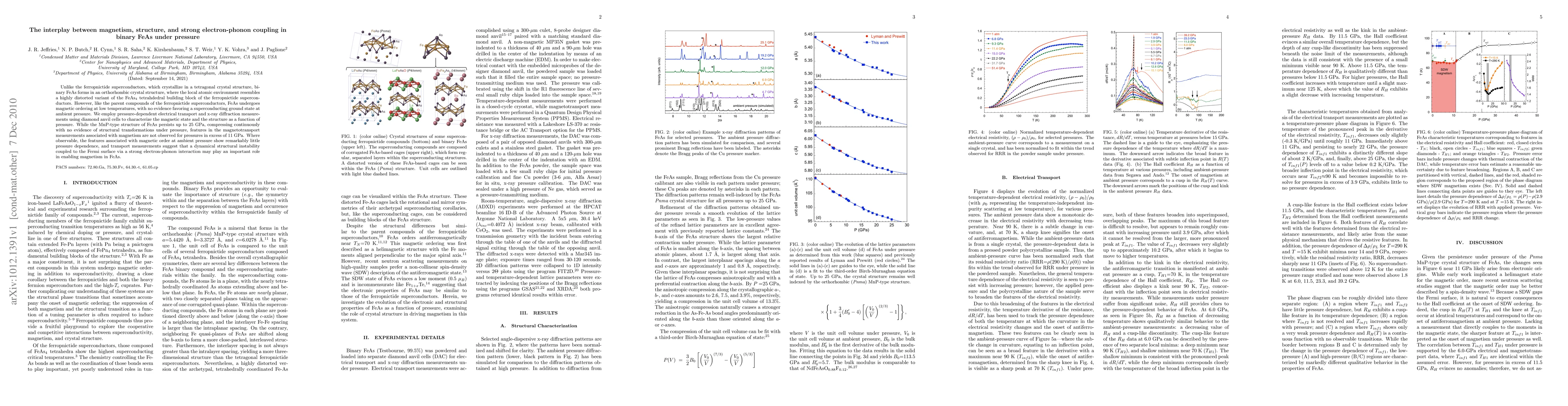 This study investigates the magnetic and structural behavior of binary FeAs under pressure, revealing that while its MnP-type structure remains stable up to 25 GPa, magnetism diminishes above 11 GPa. The findings suggest that strong electron-phonon coupling may be crucial for magnetism in FeAs.