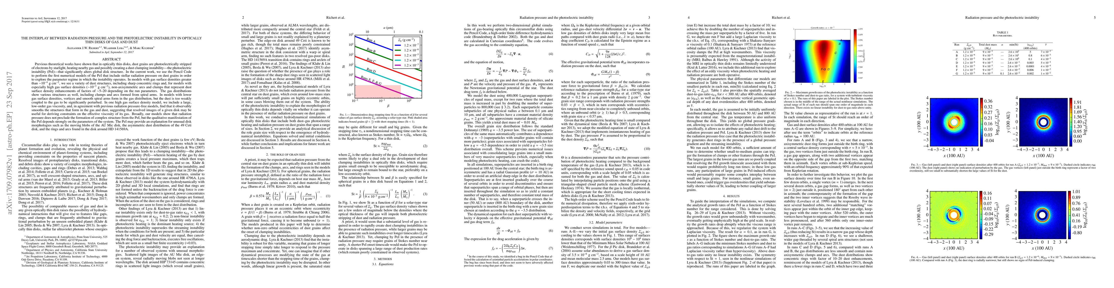 This paper investigates the interplay between radiation pressure and the photoelectric instability in optically thin disks, revealing complex dust structures like rings and arcs in high gas density models. It finds that radiation pressure does not prevent the formation of such structures, but their appearance depends on disk parameters, potentially explaining unusual disk morphologies.