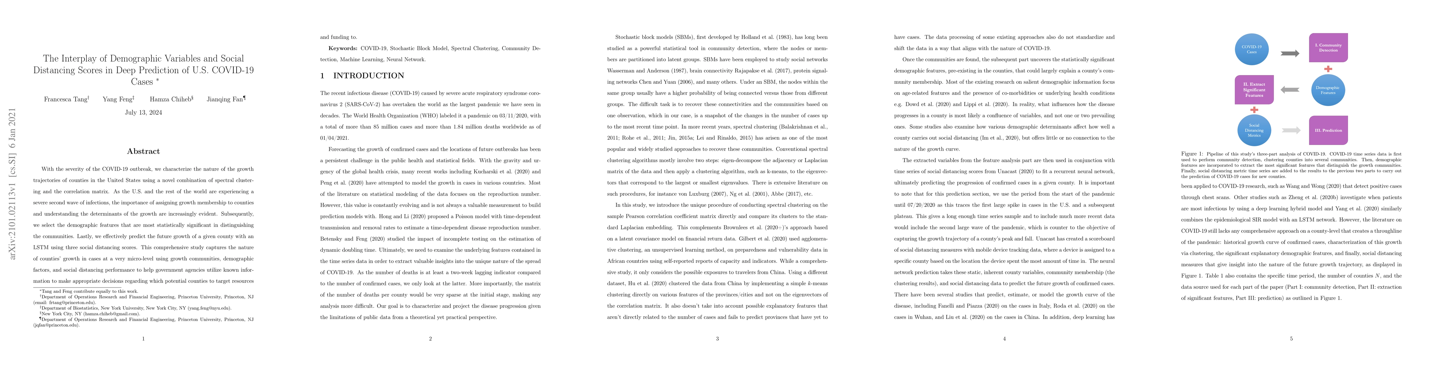 This study employs spectral clustering and correlation matrices to identify growth communities of COVID-19 cases in U.S. counties, highlighting the role of demographic variables. An LSTM model predicts future case growth using social distancing scores, aiming to assist government agencies in resource allocation.