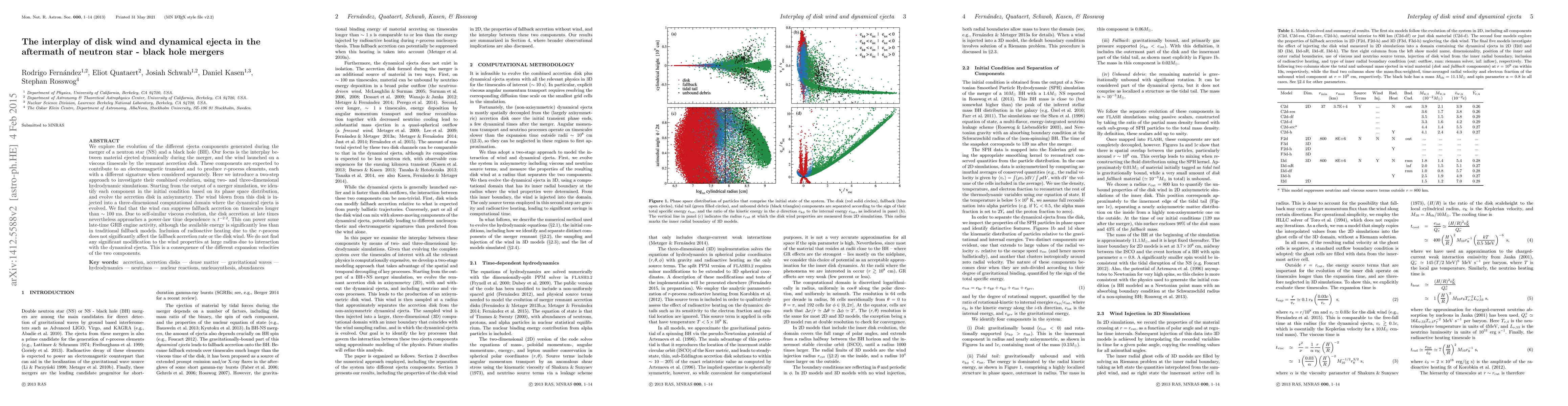 We explore the evolution of the different ejecta components generated during the merger of a neutron star (NS) and a black hole (BH). Our focus is the interplay between material ejected dynamically during the merger, and the wind launched on a viscous timescale by the remnant accretion disk. These components are expected to contribute to an electromagnetic transient and to produce r-process elements, each with a different signature when considered separately. Here we introduce a two-step approach to investigate their combined evolution, using two- and three-dimensional hydrodynamic simulations. Starting from the output of a merger simulation, we identify each component in the initial condition based on its phase space distribution, and evolve the accretion disk in axisymmetry. The wind blown from this disk is injected into a three-dimensional computational domain where the dynamical ejecta is evolved. We find that the wind can suppress fallback accretion on timescales longer than ~100 ms. Due to self-similar viscous evolution, the disk accretion at late times nevertheless approaches a power-law time dependence $\propto t^{-2.2}$. This can power some late-time GRB engine activity, although the available energy is significantly less than in traditional fallback models. Inclusion of radioactive heating due to the r-process does not significantly affect the fallback accretion rate or the disk wind. We do not find any significant modification to the wind properties at large radius due to interaction with the dynamical ejecta. This is a consequence of the different expansion velocities of the two components.