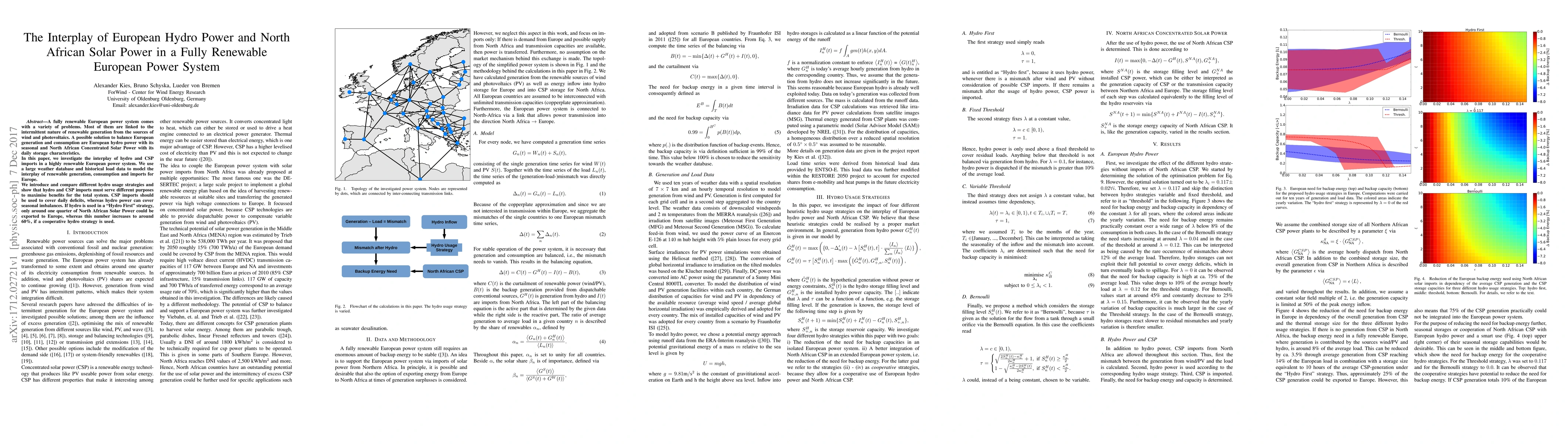 This paper explores how European hydro power and North African Concentrated Solar Power (CSP) can complement each other in a fully renewable European power system. It finds that CSP should address daily deficits while hydro covers seasonal imbalances, with cooperative hydro strategies allowing up to 60% of North African solar power to be exported to Europe.